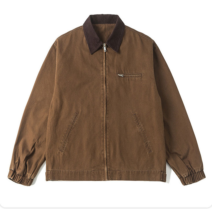 แจ็คเก็ตทำงานผ้าฝ้ายวินเทจสำหรับผู้ชายเสื้อทำงานมีซิปรูดซิปสำหรับช่างไม้ดีทรอยต์ผ้าใบ