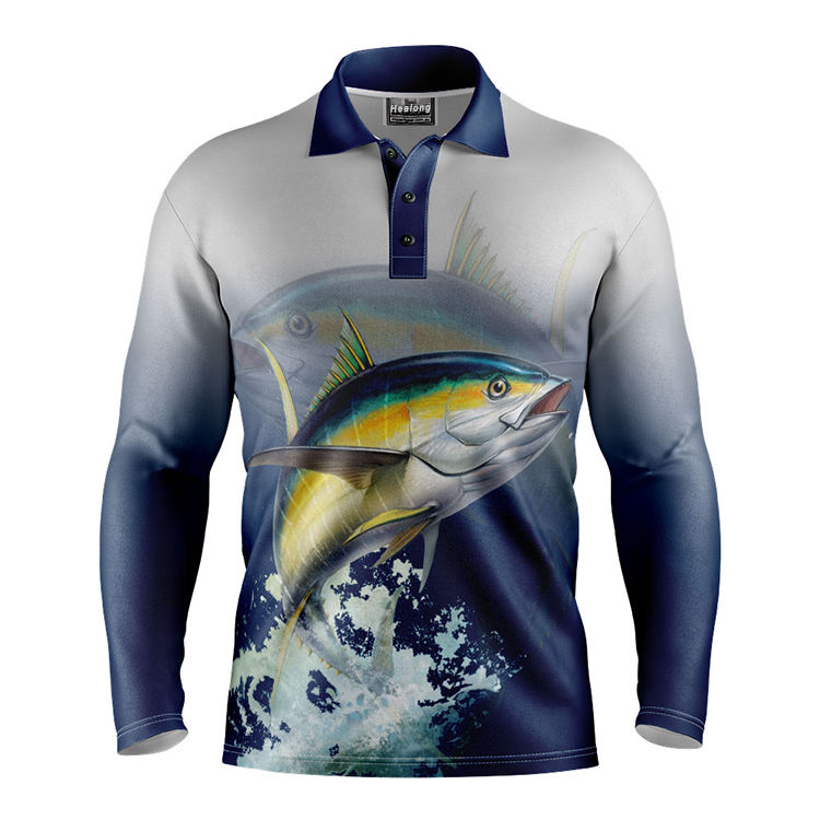ชุดตกปลาแขนยาวพิมพ์ซับลิเมชันสำหรับใส่ตกปลาเสื้อใส่กลางแจ้งออกแบบได้ตามต้องการ