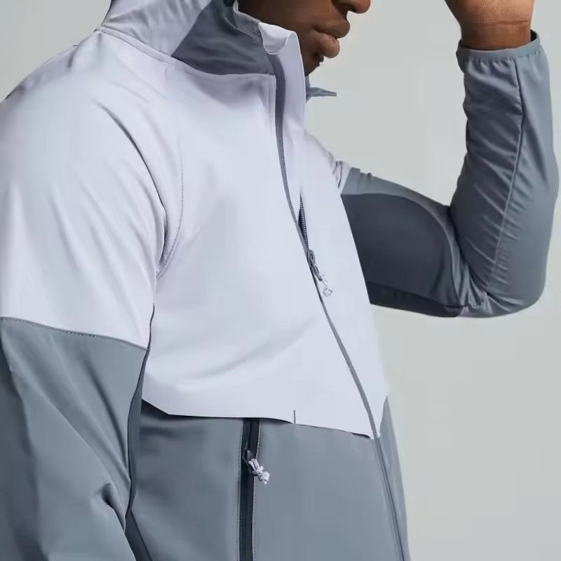 เสื้อแจ็คเก็ตกันน้ำสำหรับผู้ชายแบบสปอร์ตกลางแจ้ง พิมพ์โลโก้สะท้อนแสง ผลิตจากผ้าซอฟต์เชลล์น้ำหนักเบา โพลีเอสเตอร์ 100%