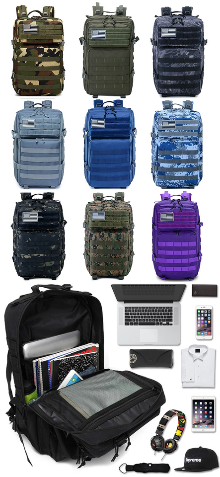 กระเป๋าเป้สะพายหลังแบบยุทธวิธีสำหรับกิจกรรมกลางแจ้ง มีหลายสีให้เลือก รับสกรีนโลโก้ ทำจากผ้า Oxford ทนทาน