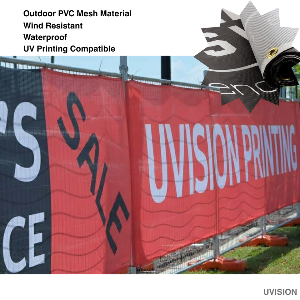 ป้ายแบนเนอร์พีวีซีตาข่ายพิมพ์ลาย UV สำหรับภายนอกอาคาร ป้องกันลม แขวนได้ สำหรับโฆษณา