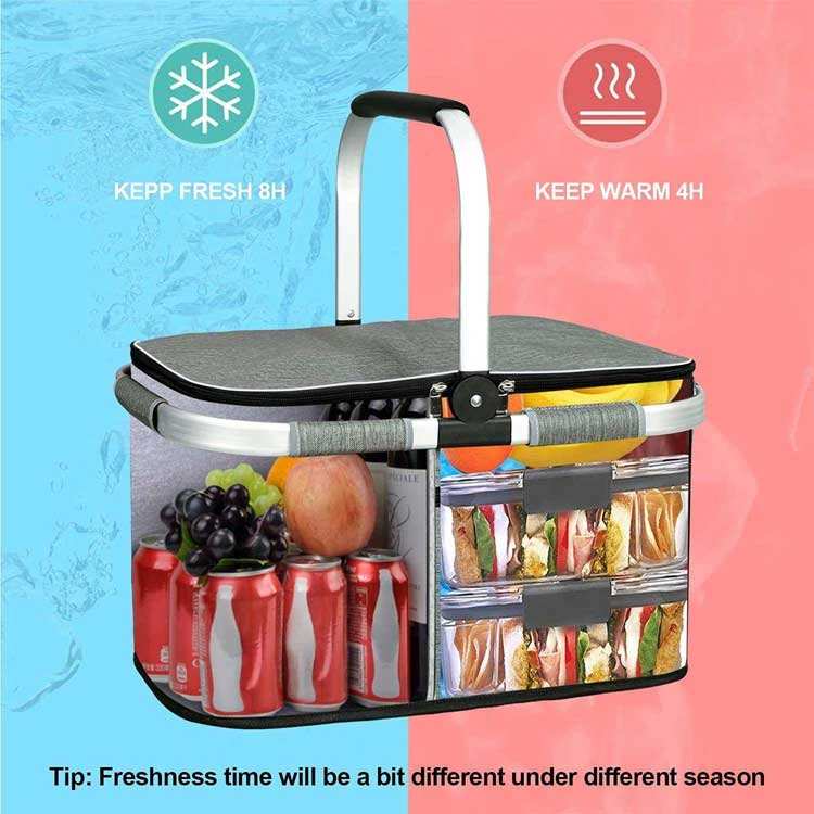 ชื่อสินค้า:ตะกร้าปิกนิกเก็บความเย็นพร้อมฝาปิด เก็บอาหารกลางวันแบบมีฉนวนกันความร้อน