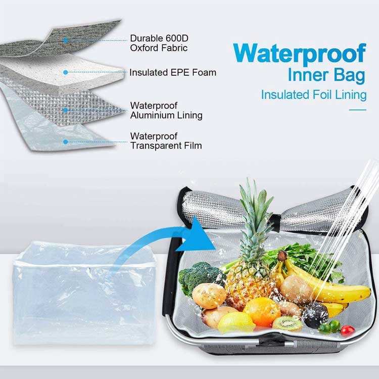 กระเป๋าเก็บความเย็นแบบพกพาสำหรับตั้งแคมป์ ปิกนิก หรือใส่ของชำ กันน้ำ พับได้ มีฝาปิด