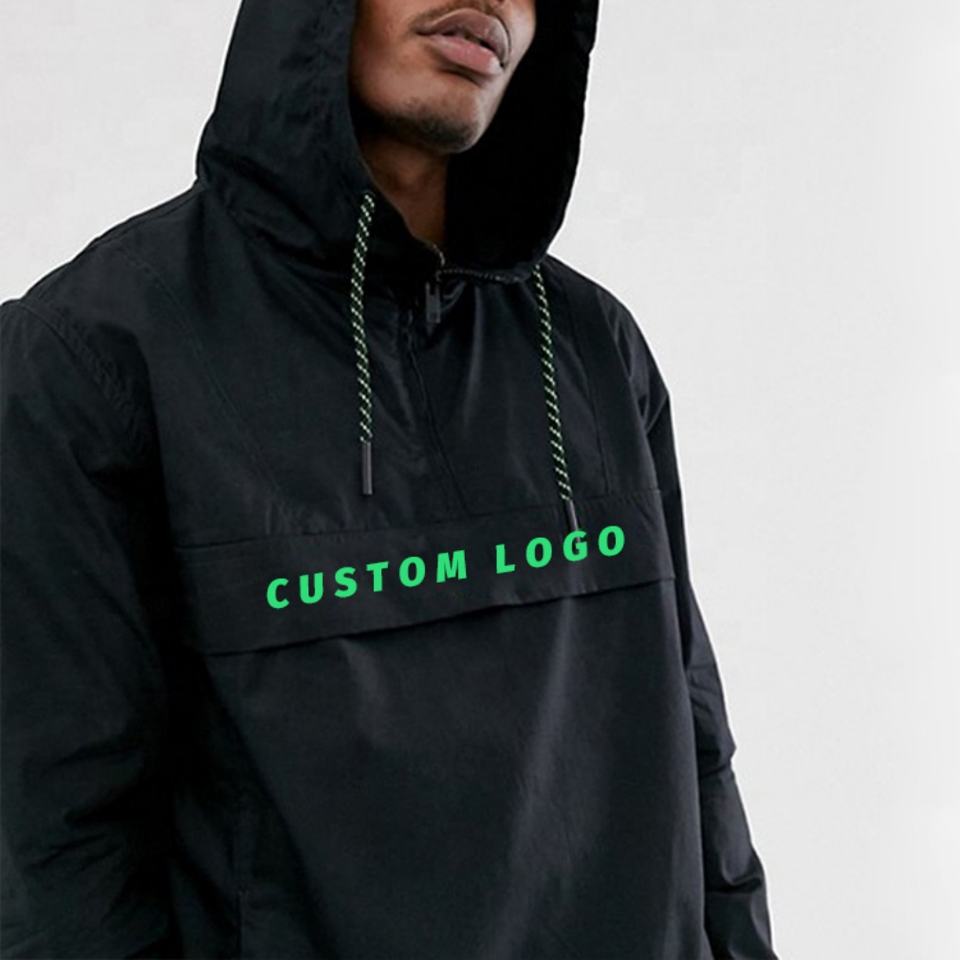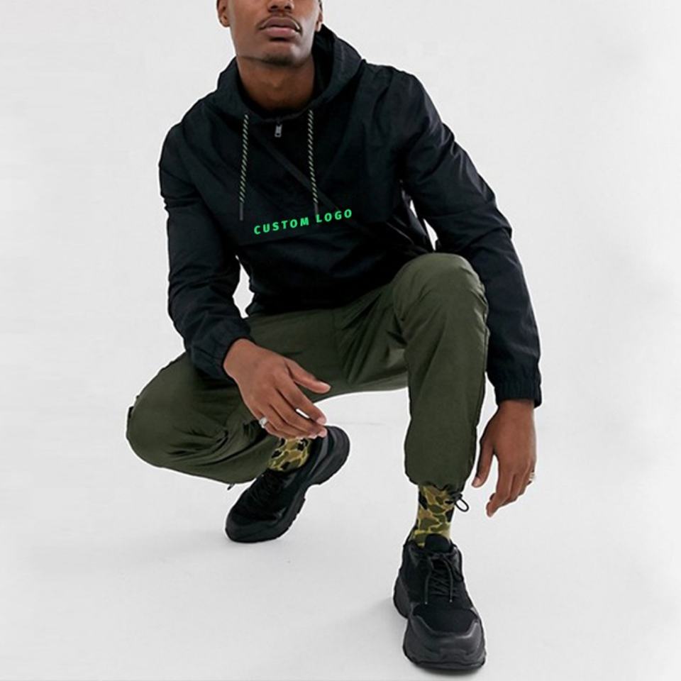 เสื้อแจ็คเก็ตกันลมแบบมีซิปครึ่งตัว ผ้าโพลีเอสเตอร์กันน้ำ สไตล์สตรีทแวร์ สีดำ สำหรับผู้ชาย