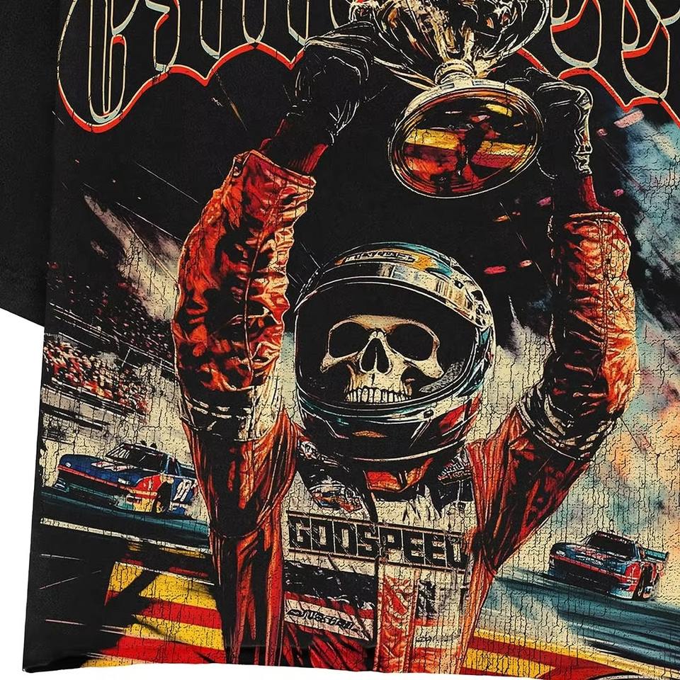 เสื้อยืดโอเวอร์ไซส์ผ้าคอตตอนหนานุ่ม พิมพ์ลายกราฟิก สไตล์วินเทจ ล้างสีแบบแอซิดวอช สำหรับผู้ชาย