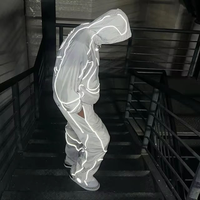 ชุดวอร์มกีฬาผู้ชายแบบสะท้อนแสง ไซส์ใหญ่พิเศษ สไตล์สตรีทแวร์ ผ้าโพลีเอสเตอร์ ไนลอน ชุดแทรคสูท ชุดจ็อกเกอร์