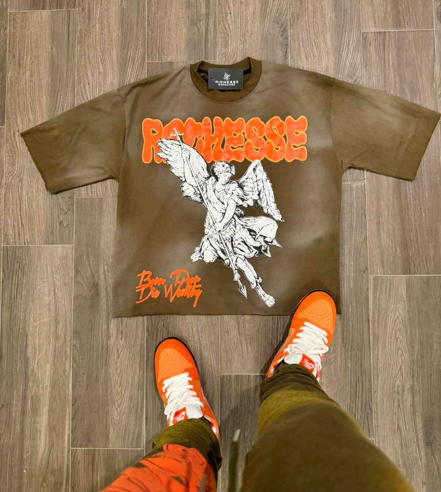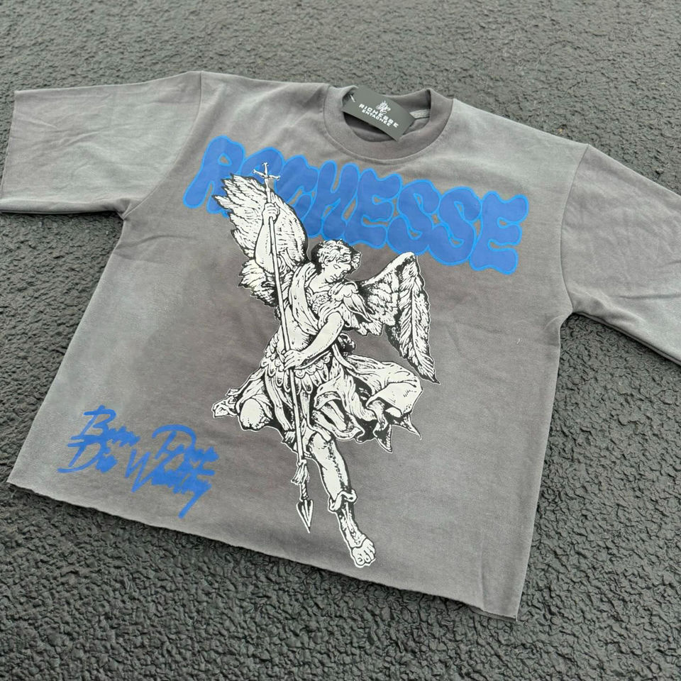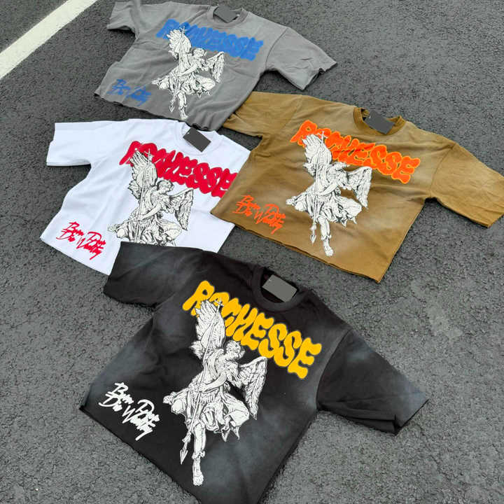 เสื้อยืดผ้าซักลายกรดสำหรับผู้ชายทรงถุงครอปไหล่ทรงหลวมมีลักษณะที่ทำให้ดูเครียดและพิมพ์ลายกราฟิกแนวสตรีท