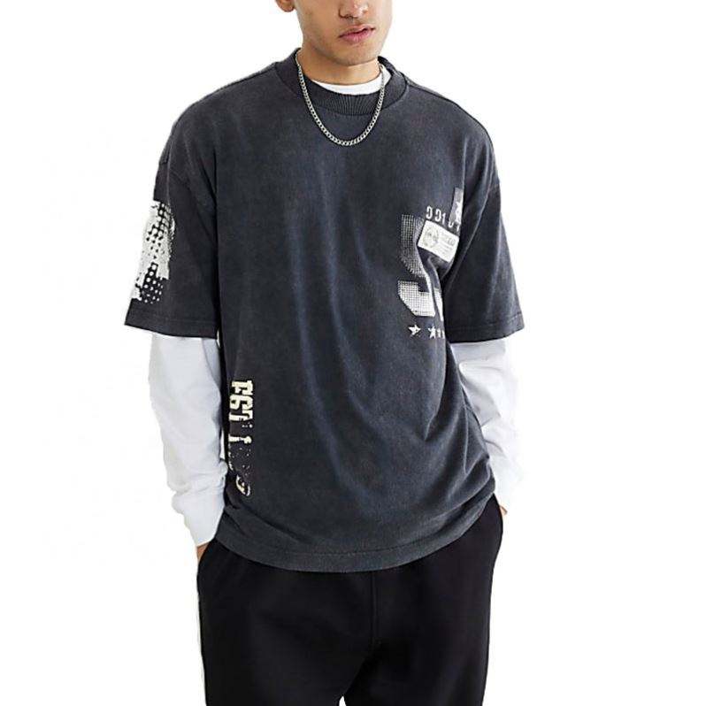 เสื้อยืดผ้าฝ้ายถักแบบซักสองชั้นสำหรับผู้ชายเสื้อซักแบบโอเวอร์ไซส์ผ้า100% ซักได้พิมพ์ลาย