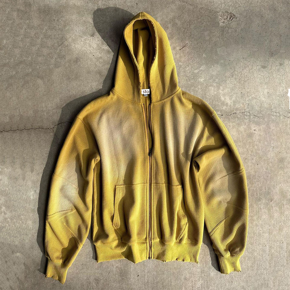 เสื้อฮู้ดผู้ชายโอเวอร์ไซส์วินเทจโอเวอร์ไซซ์ซักลายกรด