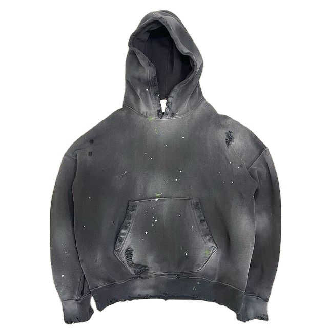 เสื้อฮู้ดดี้ทรงโอเวอร์ไซส์สไตล์วินเทจสำหรับผู้ชาย ล้างสีแบบแอซิดวอช ทำสีซีดแบบดิสเทรส ขายส่งเสื้อฮู้ดดี้ดิสเทรส