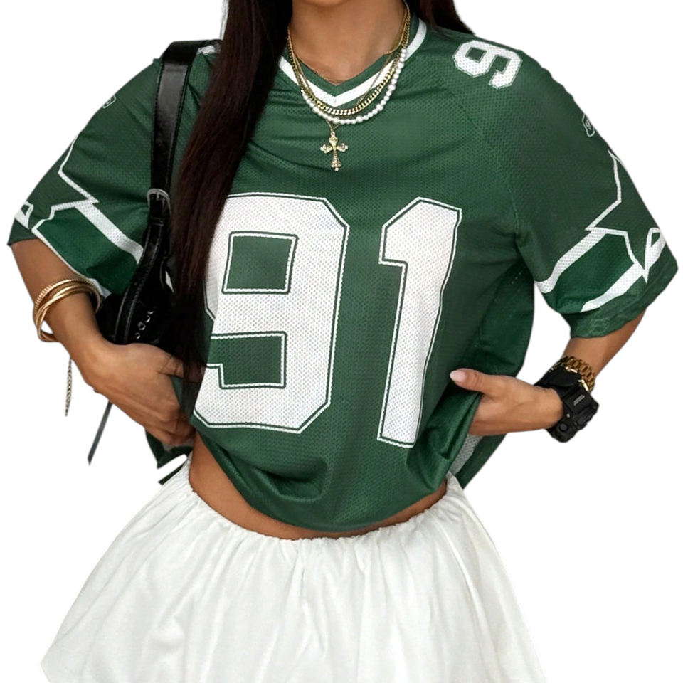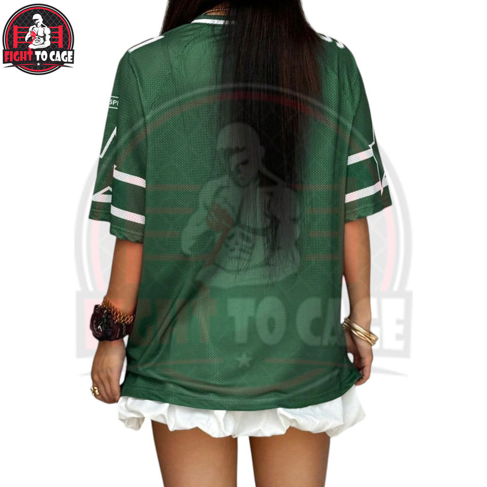 เสื้อฟุตบอลอเมริกันแบบสั่งทำพิเศษ ไซส์ใหญ่ ผ้าตาข่ายระบายอากาศ ใส่สบายสำหรับฤดูร้อน ทรงปกติ สีเขียว ขายส่งสำหรับนักกีฬา