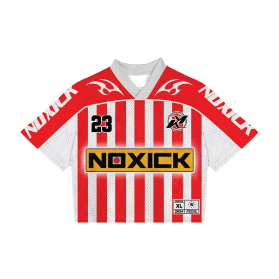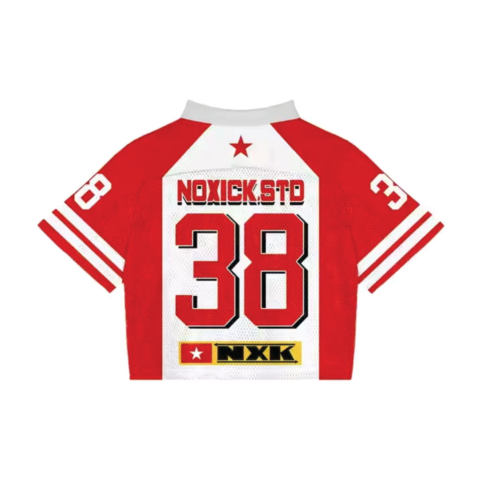 เสื้อเจอร์ซีย์อเมริกันฟุตบอลทรงบ็อกซี่ครอปขนาดใหญ่พิเศษ สไตล์สตรีทแวร์ พิมพ์ลายซับลิเมชั่น ลายสกรีนย้อนยุค ผ้าตาข่าย