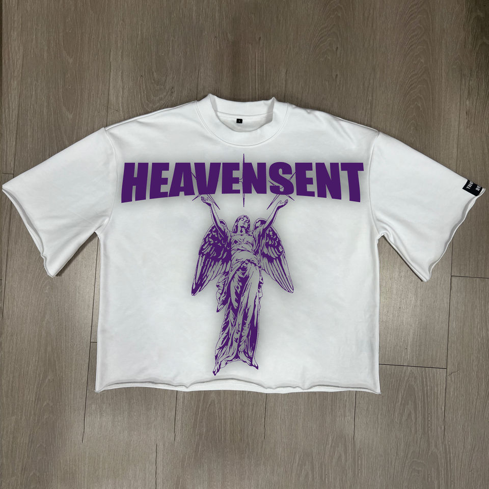 เสื้อยืดโอเวอร์ไซส์สำหรับผู้ชายเสื้อครอปผ้าฝ้าย100เฮฟวี่เวทมีแขนบานและการพิมพ์ DTG ไร้รอยต่อกำหนดเอง