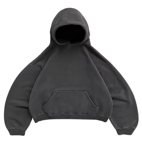 เสื้อฮู้ดดี้ผ้าฝ้ายฟลีซนุ่มพิเศษทรงโอเวอร์ไซส์สำหรับผู้ชาย แบบครอป ไหล่ตก ทรงบ็อกซี่ พิมพ์ลายนูน สไตล์เท่ๆ