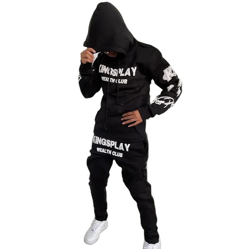 เสื้อฮู้ดผ้าคอตตอนโอเวอร์ไซส์สำหรับผู้ชายชุดวอร์มผ้าคอตตอนแบบสวมหัวมีฮู้ดพิมพ์ลายแบบสวมหัวพร้อมกางเกงวิ่ง