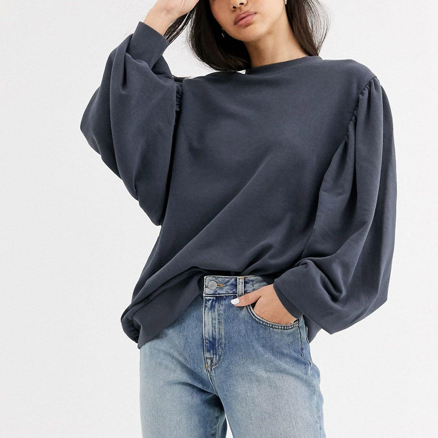 เสื้อสเวตเชิ้ตคอกลมโอเวอร์ไซส์แบบสั่งทำพิเศษสำหรับผู้หญิง ผ้าฝ้ายฟลีซ 100% ชายเสื้อแบบลึก สไตล์วินเทจ เสื้อพูลโอเวอร์แบบเรียบง่ายสำหรับฤดูหนาว รับผลิตแบบ OEM ขายส่ง