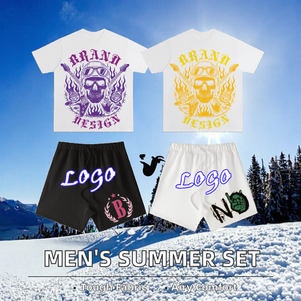 ชุดเสื้อผ้าแฟชั่น2ชิ้นสำหรับผู้ชายชุดสั้นลำลอง100% เสื้อยืดผ้าฝ้ายและกางเกงขาสั้นทรงโอเวอร์ไซส์ออกแบบโลโก้ DTG สำหรับฤดูร้อน