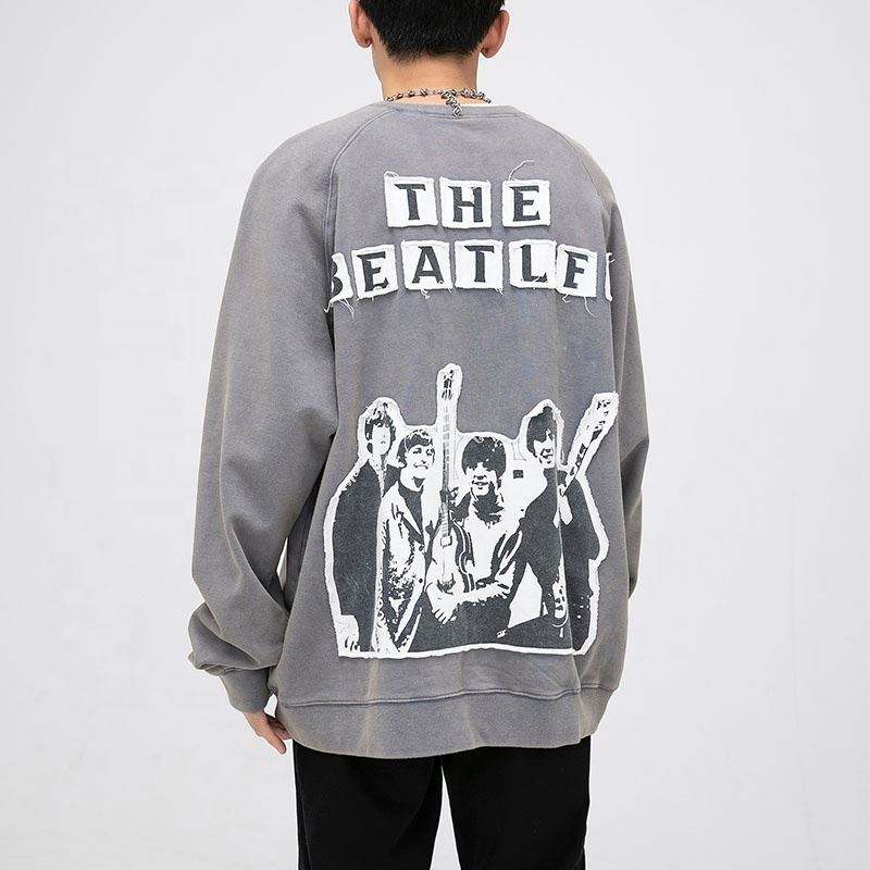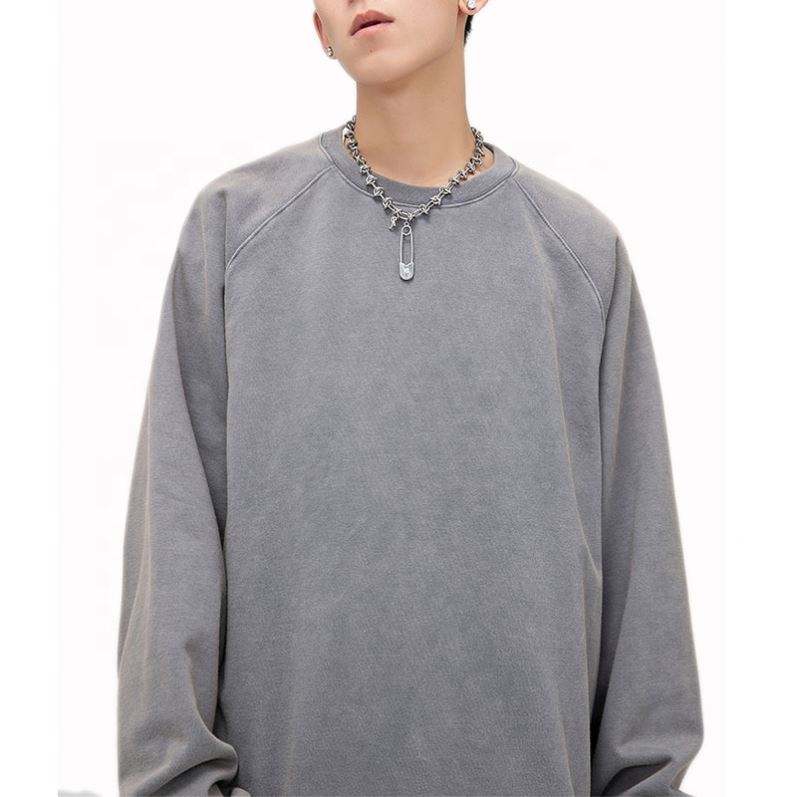 เสื้อสเวตเชิ้ตปักลายโอเวอร์ไซส์สำหรับผู้ชายเสื้อวินเทจฟอกสีกรด