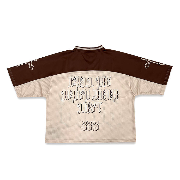 เสื้อฟุตบอลโอเวอร์ไซส์แบบกำหนดเองเสื้อเจอร์ซีย์ตาข่ายย้อนยุคบ็อกซี่ใส่ได้พอดีกับอเมริกันฟุตบอล