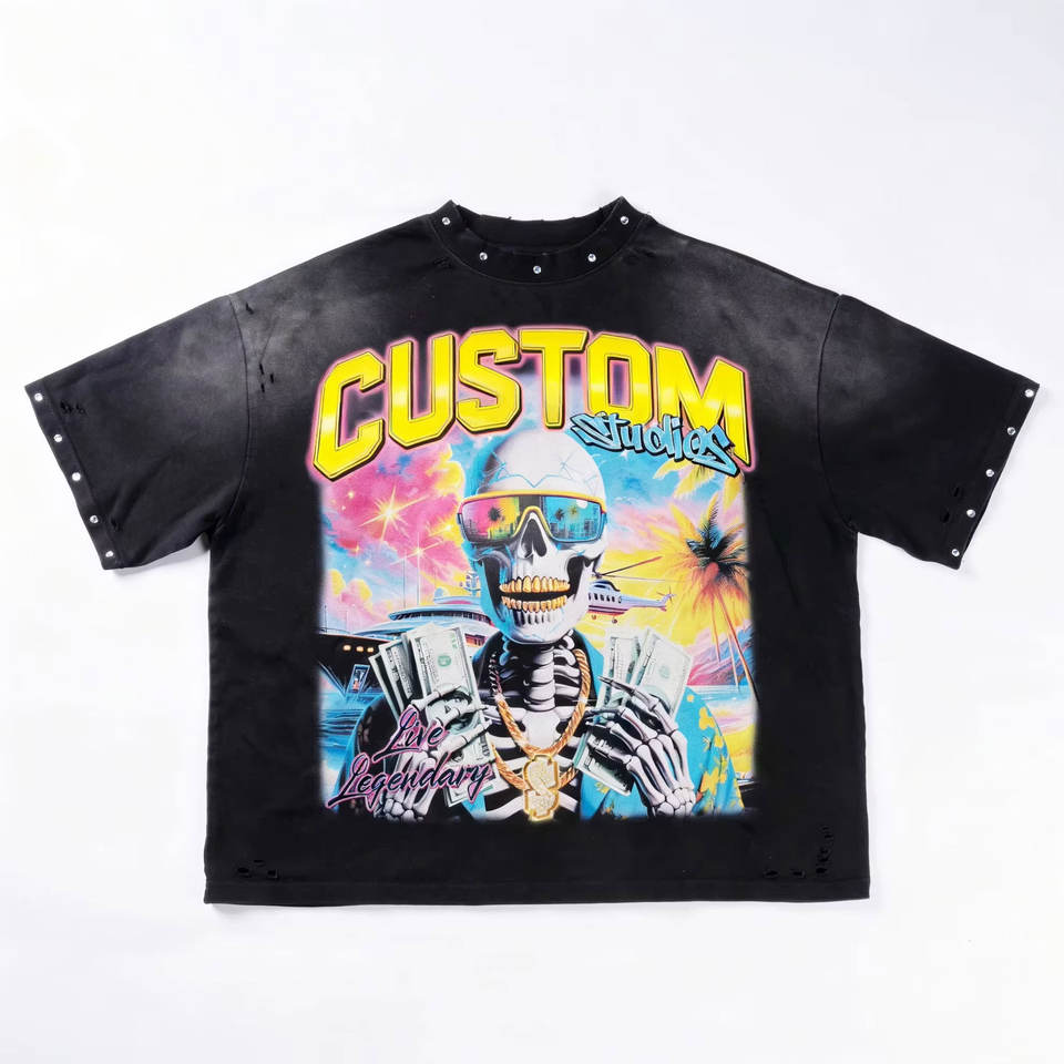 เสื้อยืดผ้าฝ้ายเฮฟวี่เวทสำหรับผู้ชายเสื้อยืดลายกราฟิก DTG สำหรับผู้ชายเสื้อผ้าแนวสตรีทแวร์แนววินเทจ