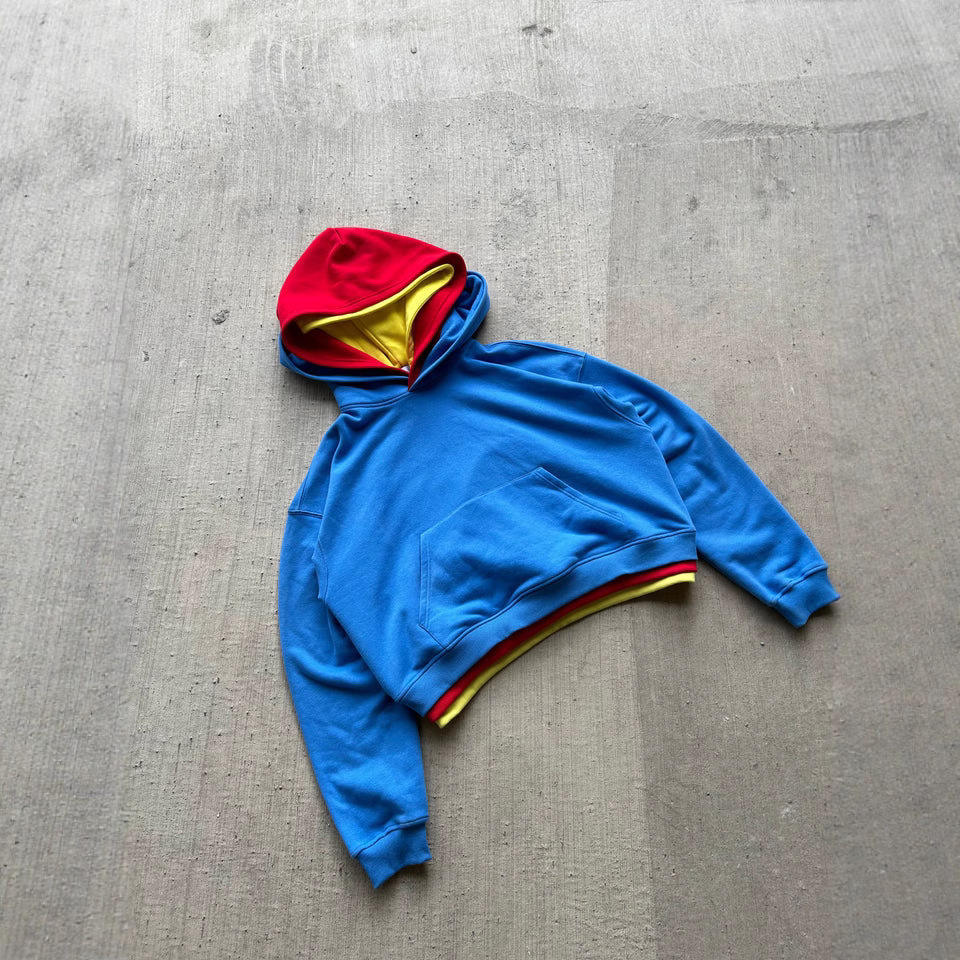 เสื้อสวมหัวเฮฟวี่เวทโอเวอร์ไซส์มีฮู้ดสามชั้นมีหลายสีเสื้อครอปแบบสามชั้นกำหนดเองได้ทั้งชายและหญิง