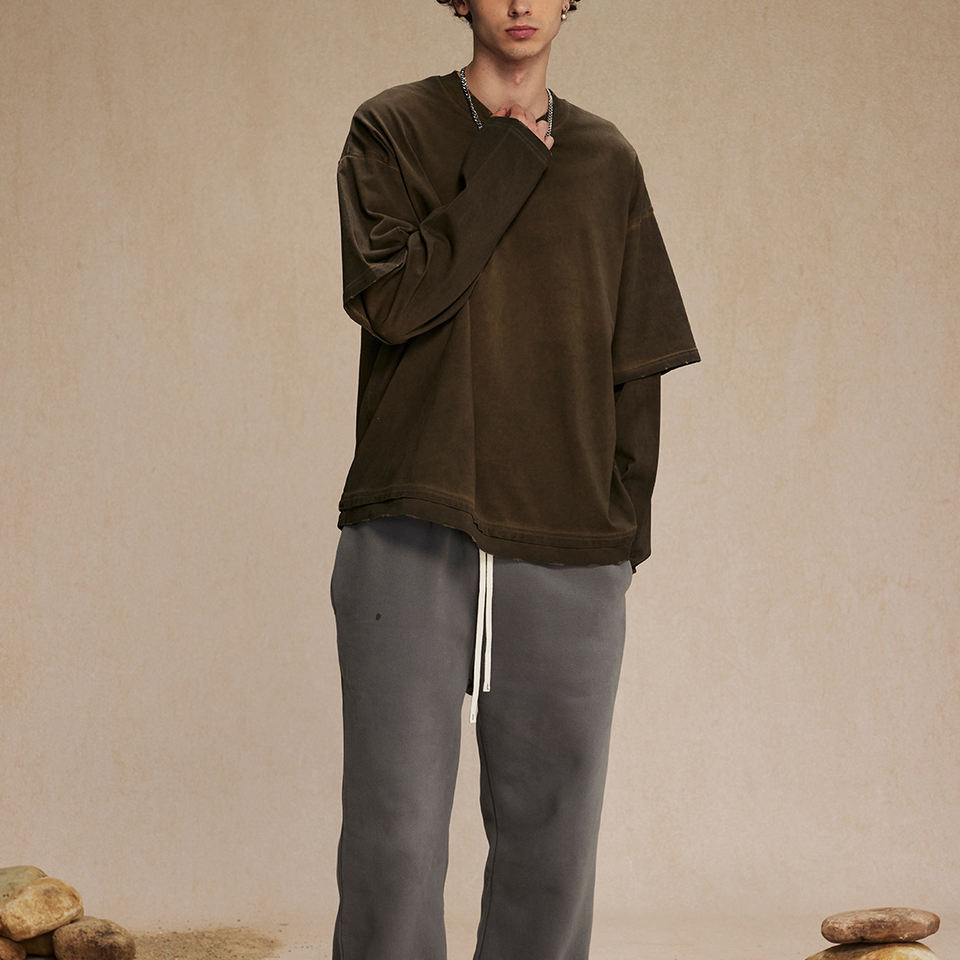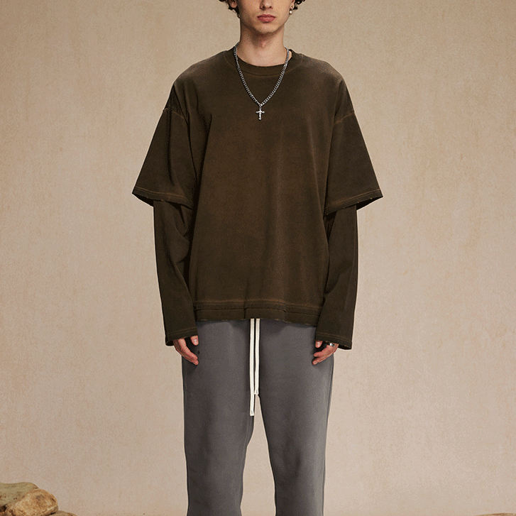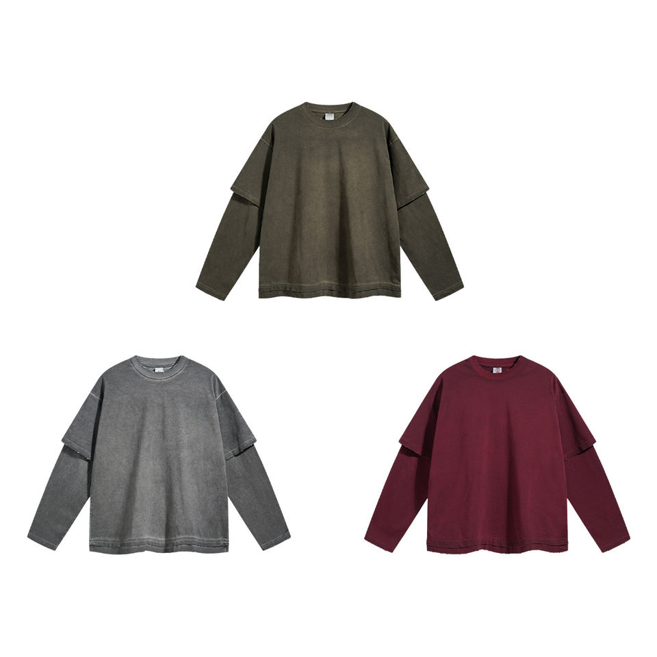 เสื้อยืดแขนยาวทรงโอเวอร์ไซส์คุณภาพสูง ลายเรียบ หนานุ่ม ทรงบ็อกซี่ สำหรับผู้ชาย