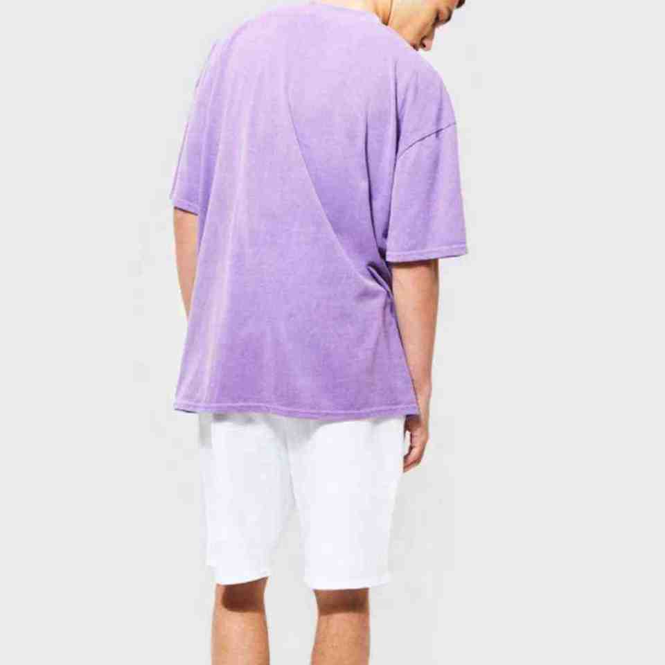 เสื้อยืดคอกลมสำหรับผู้ชายผ้า100% ผ้าฝ้ายแขนสั้นทรงหลวมทรงหลวมสีม่วงออกแบบได้ตามต้องการ