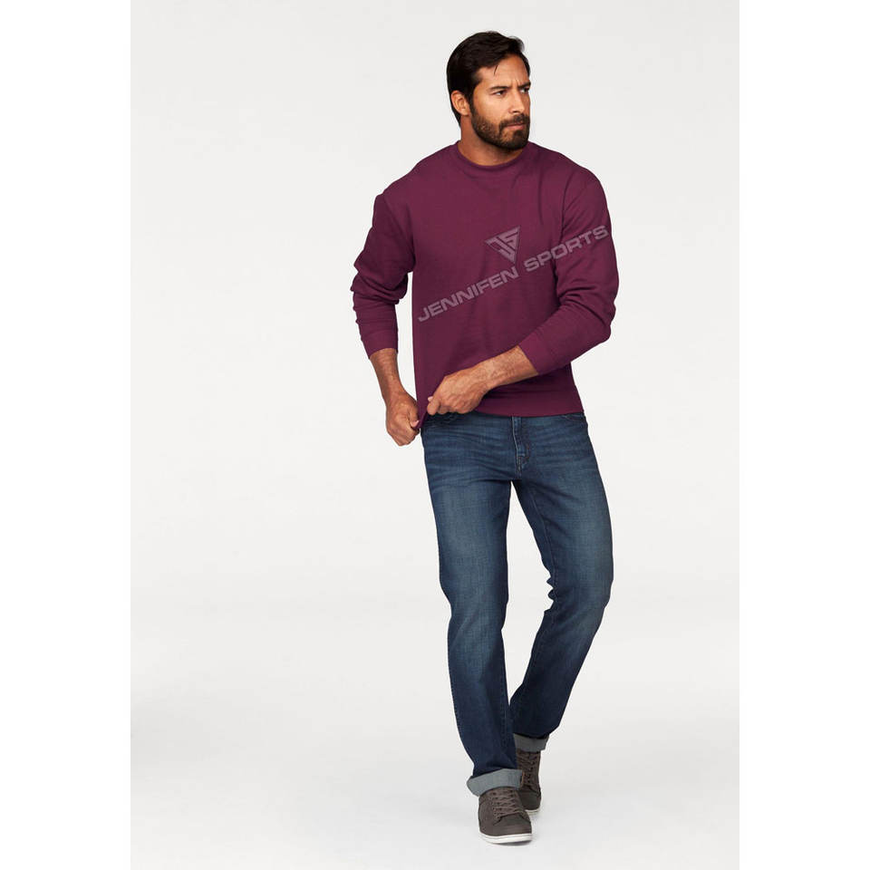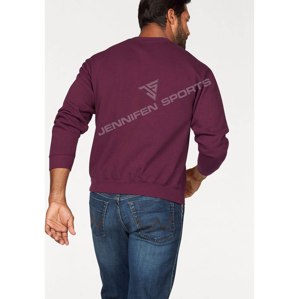เสื้อสเวตเชิ้ตคอกลมผ้าฟลีซคอตตอนทรงโอเวอร์ไซส์สำหรับผู้ชาย แต่งขอบคอริบบ์ แบบเรียบง่าย