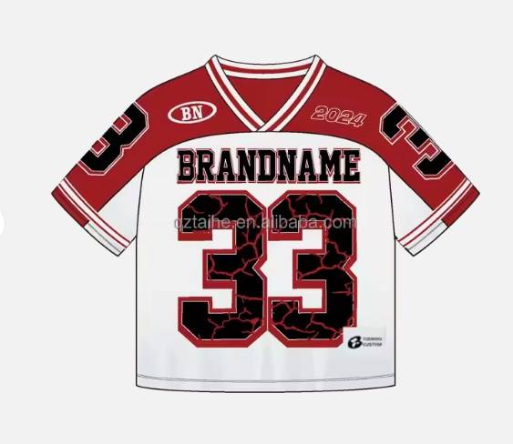 เสื้อฟุตบอลสไตล์เรโทรผ้าโพลีเอสเตอร์ขนาดใหญ่พิเศษ พิมพ์ลายด้วยความร้อน ระบายอากาศได้ดี ทรงบ็อกซี่ สตรีทแวร์