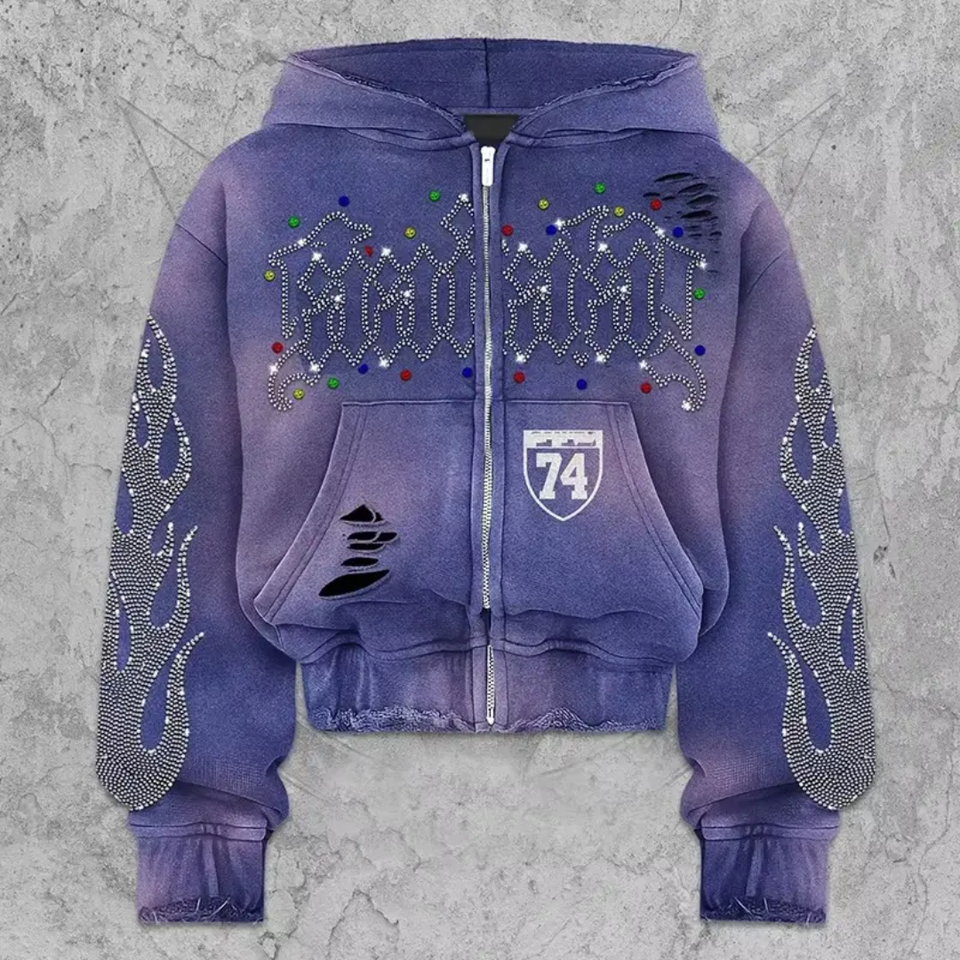 เสื้อฮู้ดผ้าฟลีซปักคริสตัลขนาดใหญ่พิเศษ ผ้าฝ้าย 100% หนานุ่ม สไตล์สตรีทแวร์สำหรับฤดูหนาว ผู้ชาย รับผลิตแบบ OEM