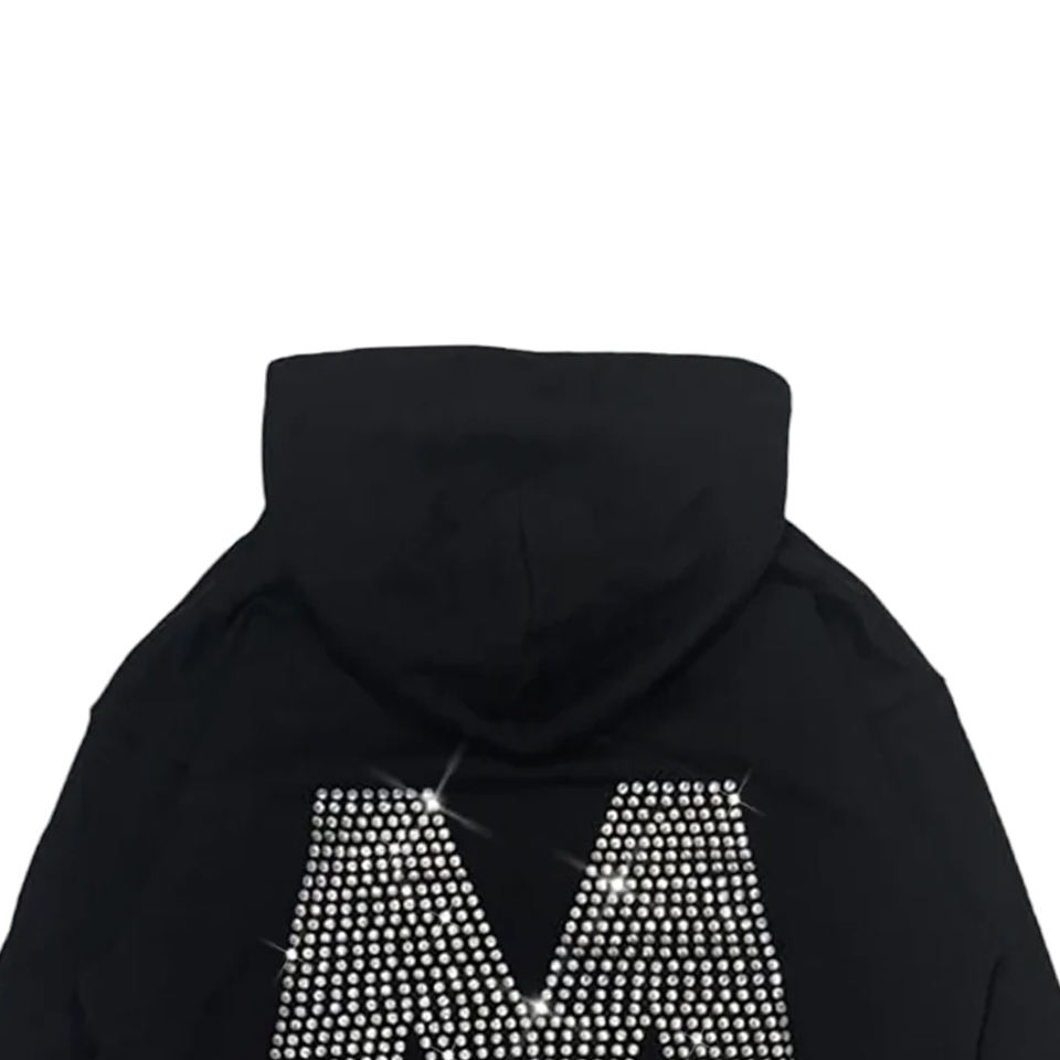 เสื้อฮู้ดแบบสวมหัวมีฮู้ดทรงหลวมโอเวอร์ไซส์ทำจากพลอยเทียมสำหรับผู้ชาย