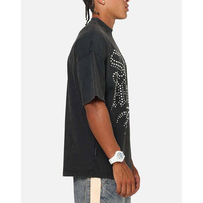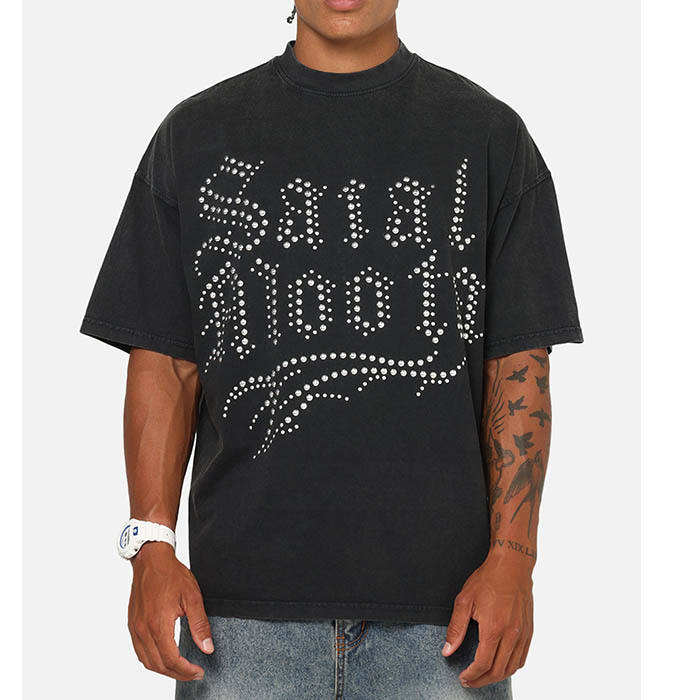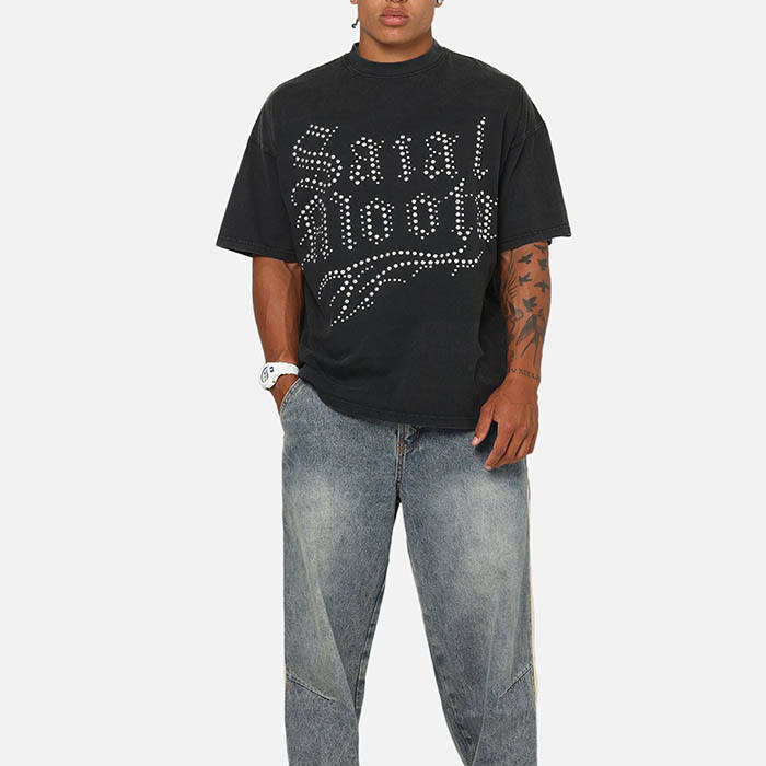 เสื้อยืดโอเวอร์ไซส์ประดับเพชรเทียม ผ้าคอตตอน 100% ผ้าเนื้อละเอียด สีดำ ปรับแต่งสีและขนาดได้ ไม่ยับ