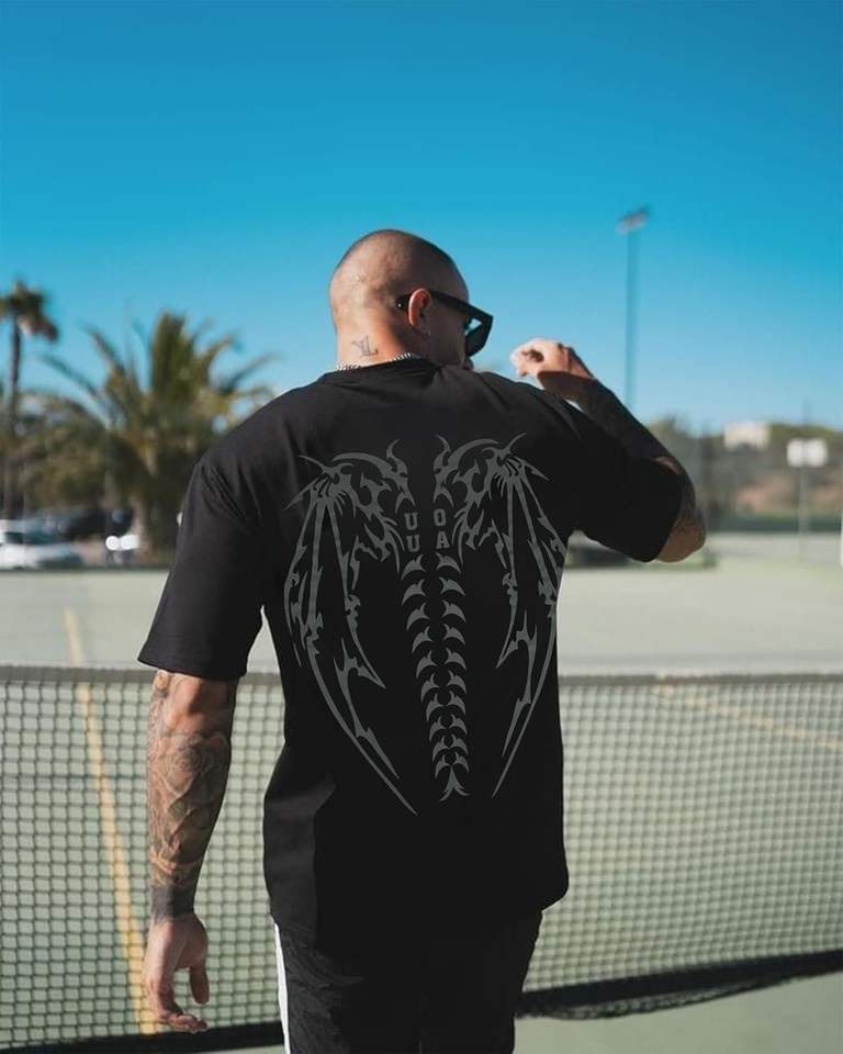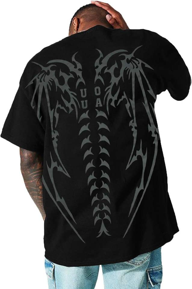 เสื้อยืดแนวสตรีทโอเวอร์ไซส์สำหรับผู้ชายเสื้อยืดลายกราฟฟิคโชว์ไหล่เสื้อยืดฮิปฮอปทรงหลวมแนววินเทจ