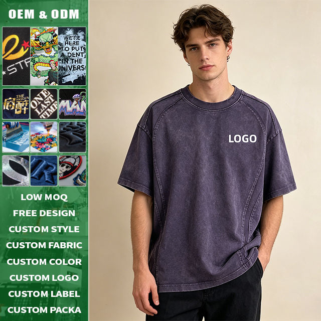 เสื้อยืดวินเทจทรงโอเวอร์ไซส์สั่งทำพิเศษ 275GSM ผ้าฝ้ายถัก 100% ซักแบบ Snow Wash แต่งดีเทลขาดๆ ด้านหน้าเย็บแบบ Raw Edge ระบายอากาศได้ดี