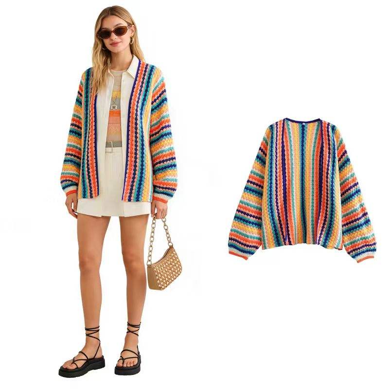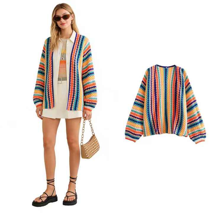 เสื้อคาร์ดิแกนไหมพรมถักโครเชต์ขนาดใหญ่พิเศษสำหรับผู้หญิง สไตล์ลำลอง พร้อมโลโก้ด้านหน้า