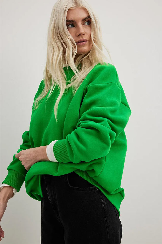 เสื้อสเวตเชิ้ตผู้หญิงไซส์ใหญ่พิเศษ ผ้าฝ้าย 100% ทรงไหล่ตก สีเขียว เสื้อสเวตเชิ้ตผู้หญิงแบบเรียบ คอกลม สไตล์สตรีทแฟชั่น