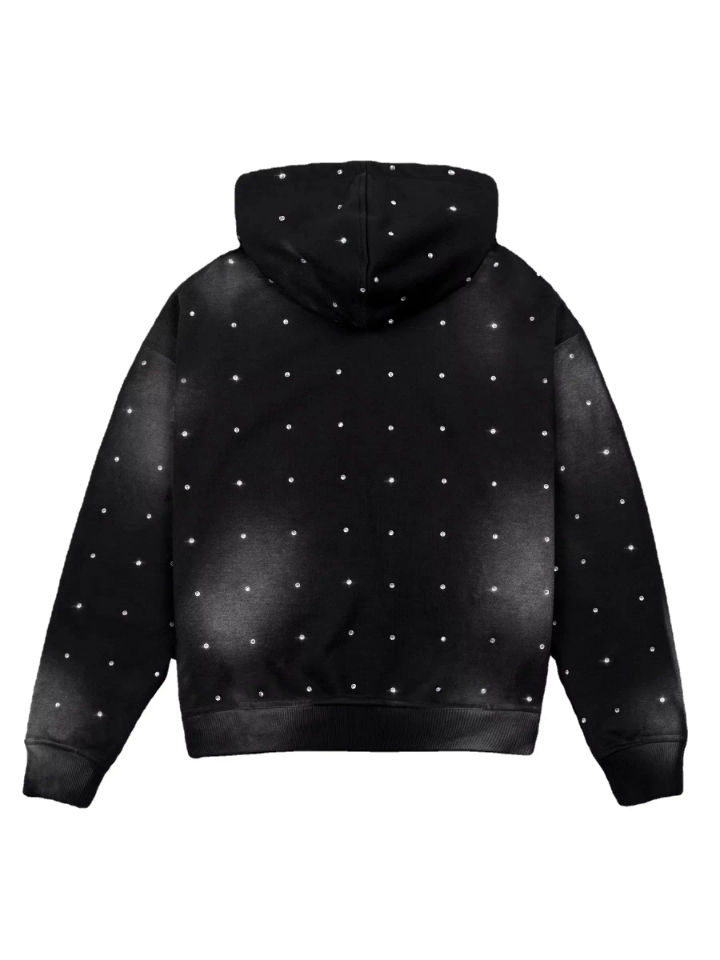 เสื้อฮู้ดดี้ผู้ชายผ้าฟลีซเนื้อผ้าฝ้าย 100% คุณภาพสูง ลวดลายเพชร ดีไซน์แฟชั่นสีดำ ล้างสีแบบซันเฟด พร้อมปักโลโก้ตามสั่ง