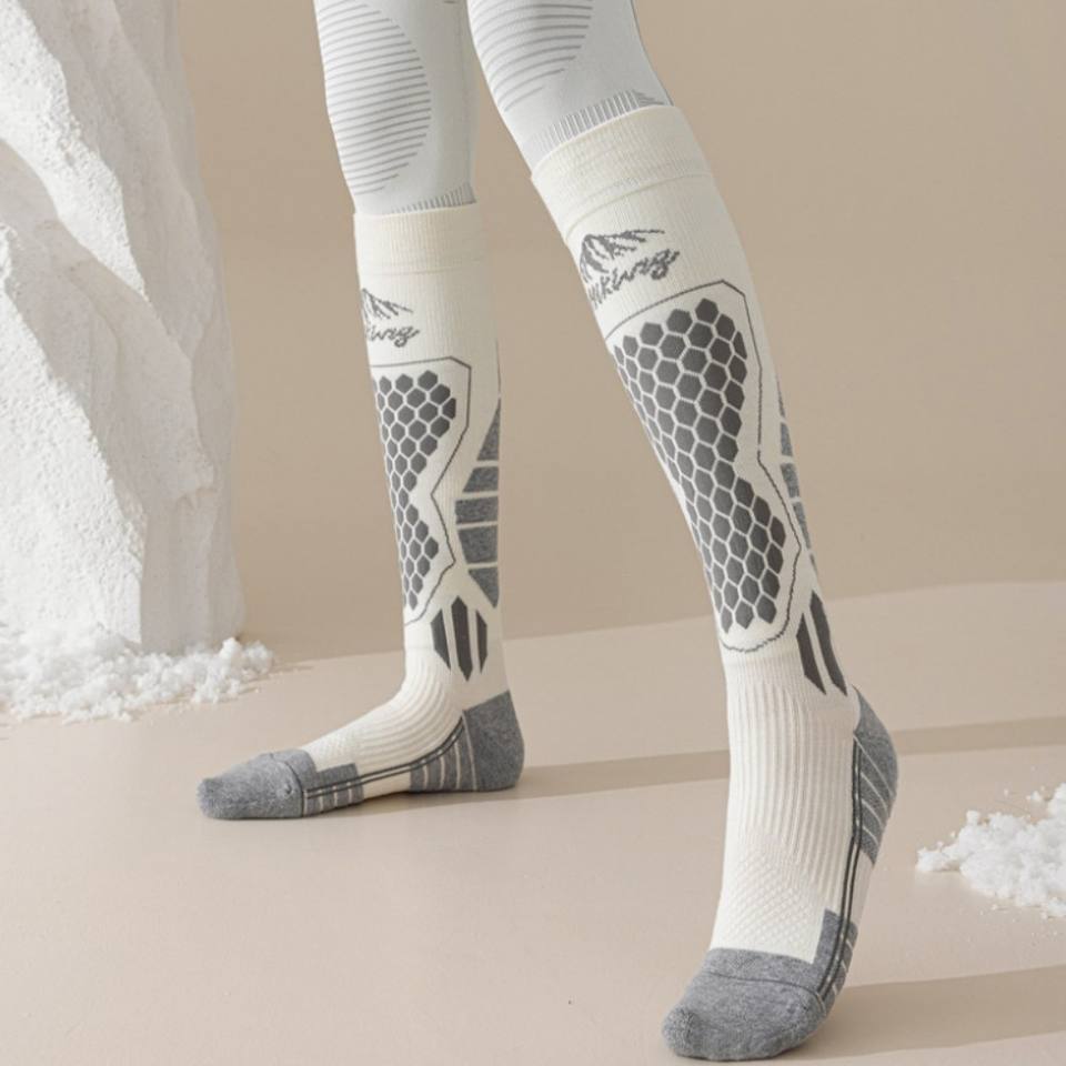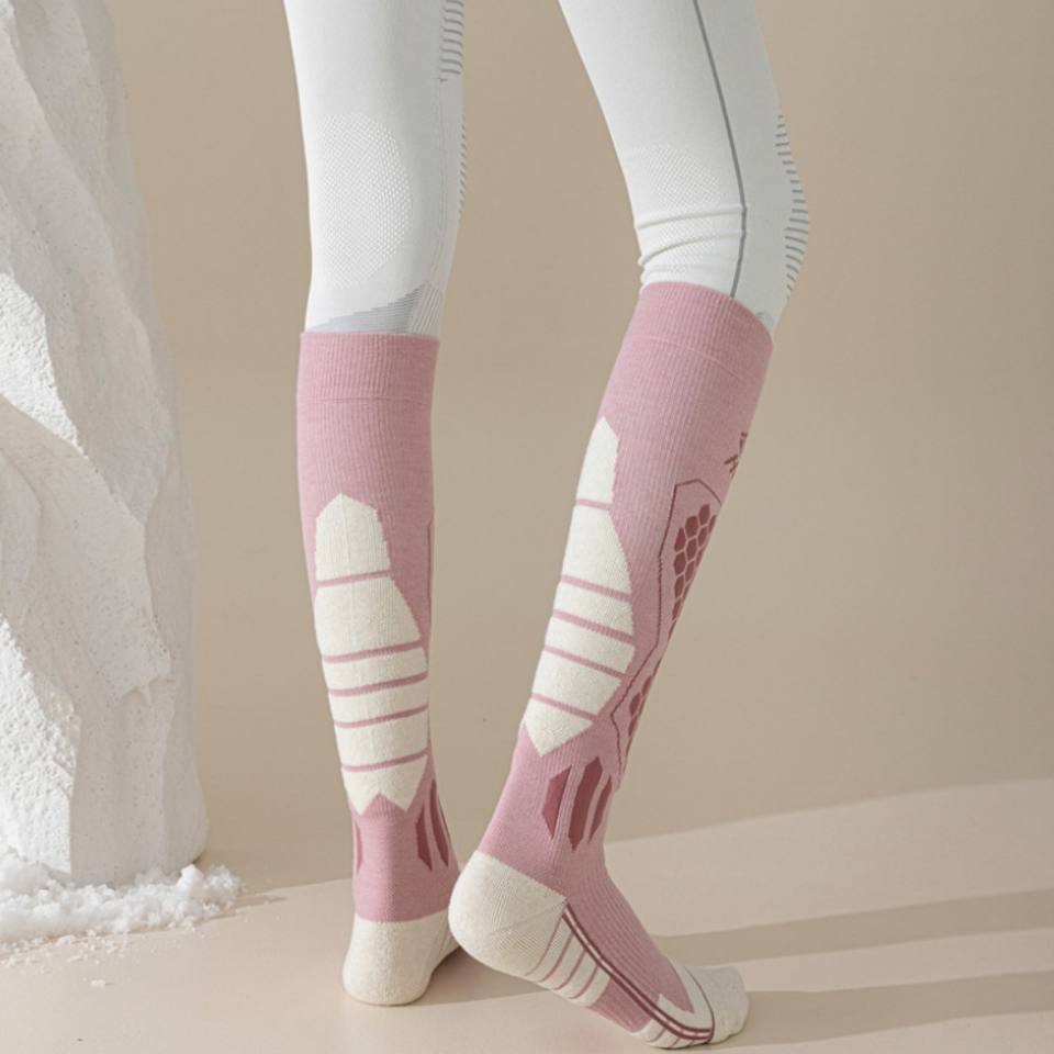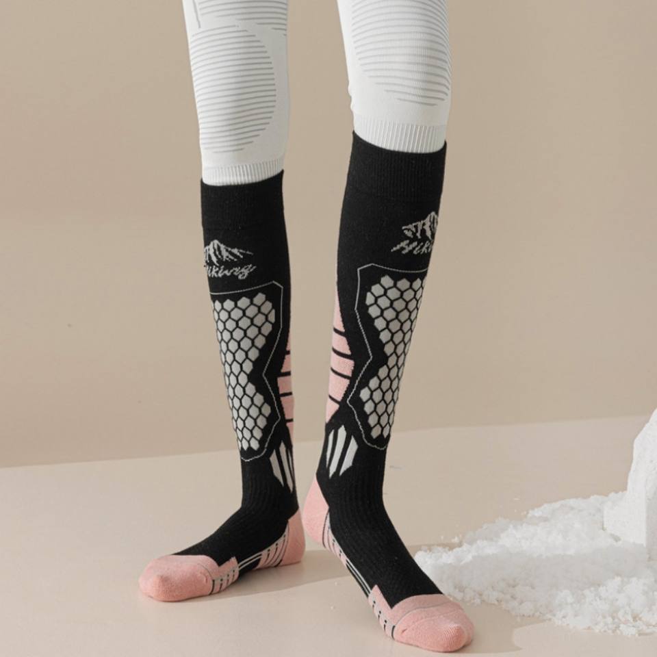 ถุงเท้าสกีขนสัตว์อุ่นสำหรับเดินป่าแบบหนาถักลายพิเศษพร้อมโลโก้สั่งทำเอง ขายส่ง ป้องกันการลื่นไถลด้วยพื้นผ้าขนหนู