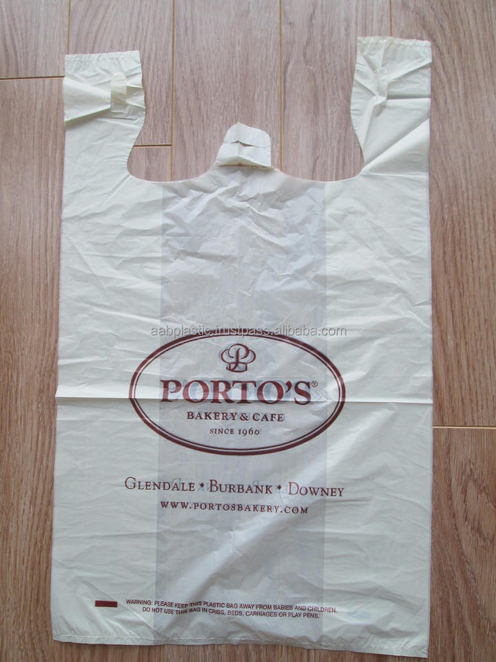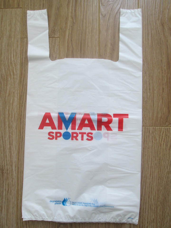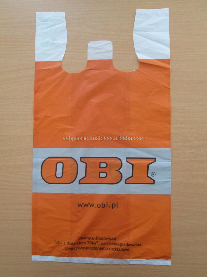 ถุงใส่เสื้อกั๊กพลาสติกสำหรับช้อปปิ้งเสื้อยืดพิมพ์โลโก้ของตัวเอง