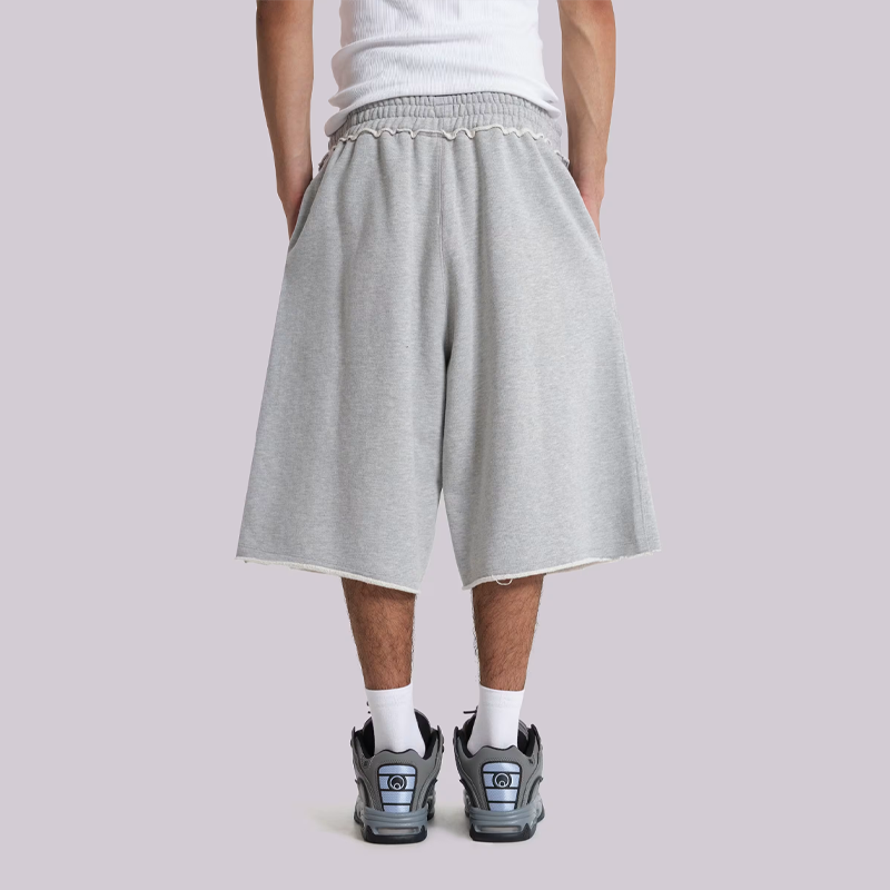 กางเกงขาสั้นวอร์มผู้ชายทรงวินเทจเอวสูงผ้ายืดระบายอากาศได้ดี ขนาดใหญ่พิเศษ ความหนา 240gsm ยาวระดับเข่า แบบสั่งทำพิเศษ