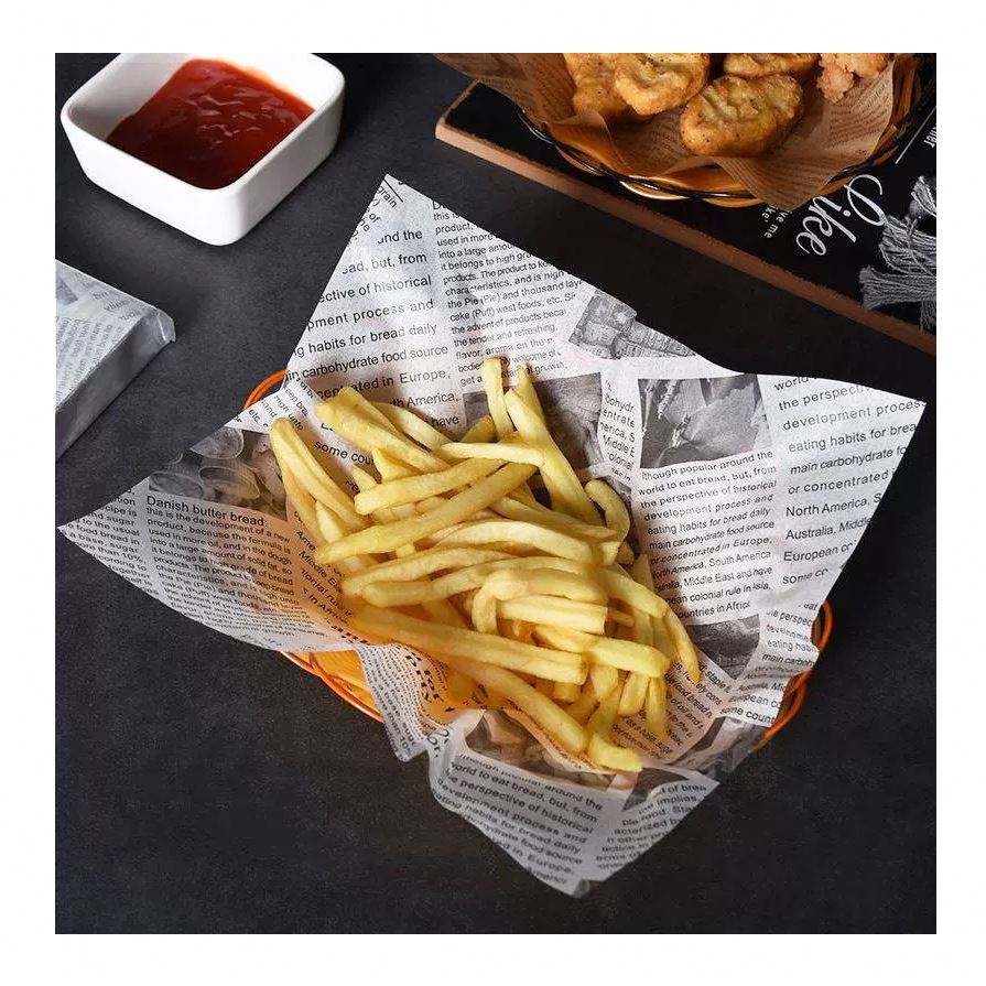 กระดาษห่อแซนด์วิชแฮมเบอร์เกอร์แบบเคลือบ PE ดีไซน์พิเศษ เป็นมิตรกับสิ่งแวดล้อม หนา 38 แกรม สีขาว ทนทานต่อคราบไขมัน