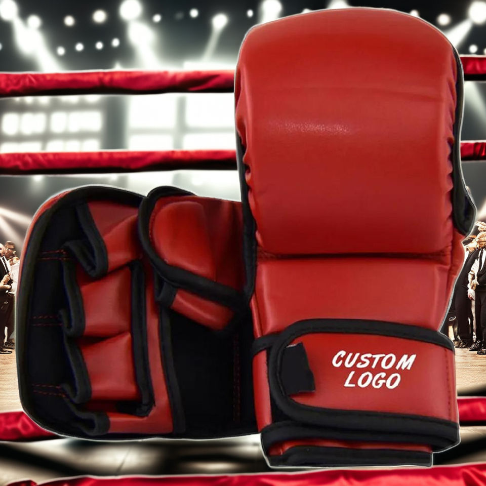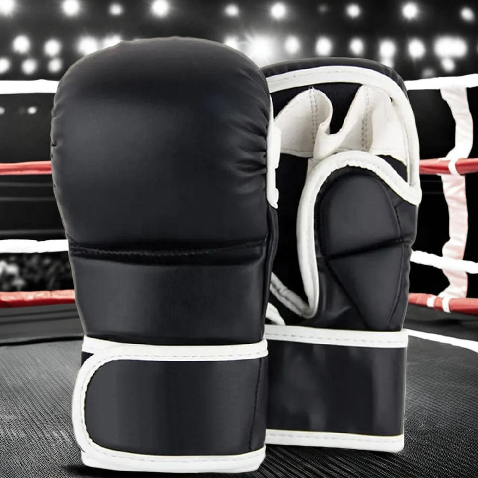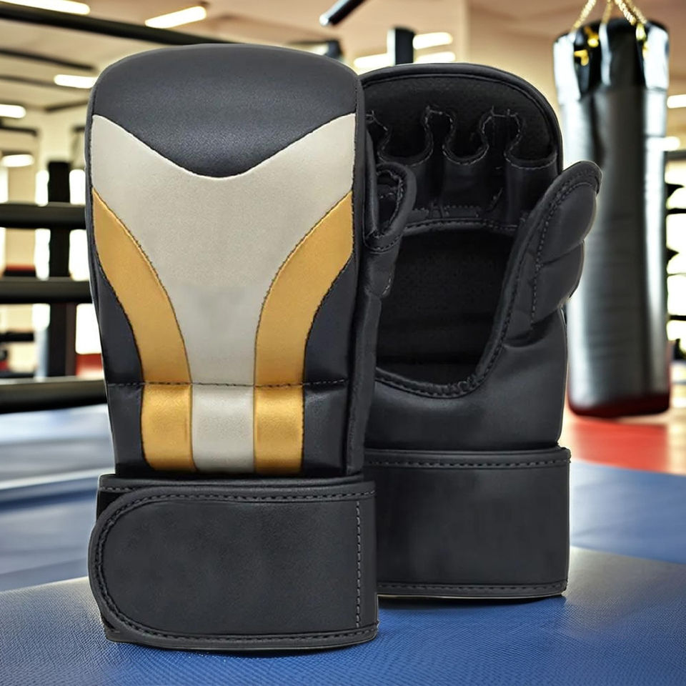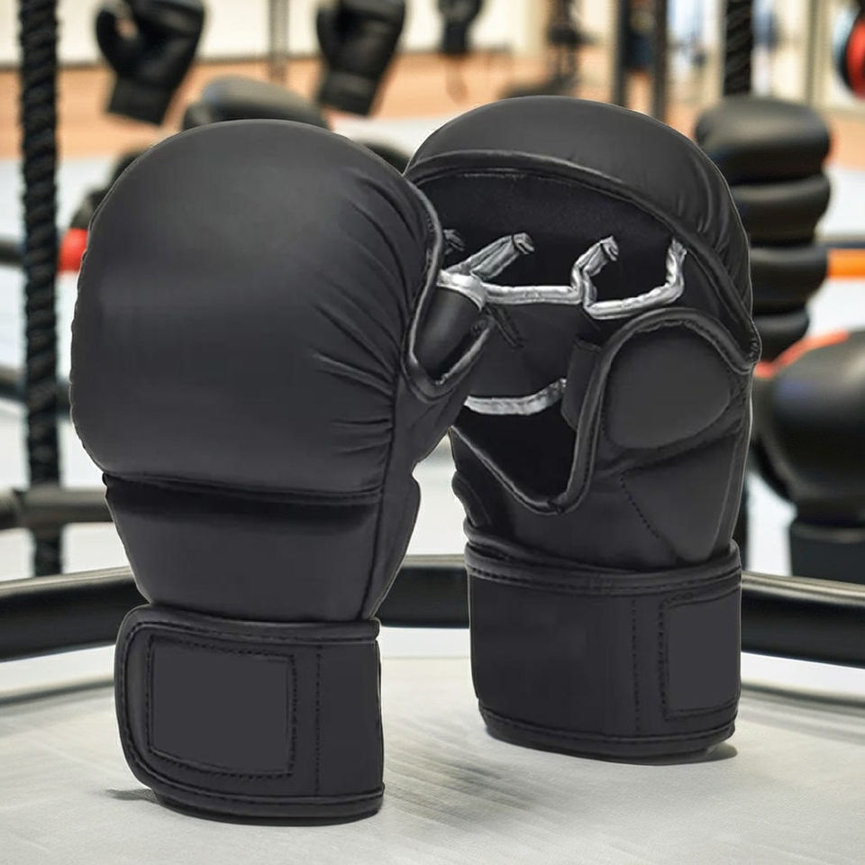 ถุงมือ MMA หนัง PU สีดำสำหรับฝึกซ้อมมวยไทยและต่อยมวย