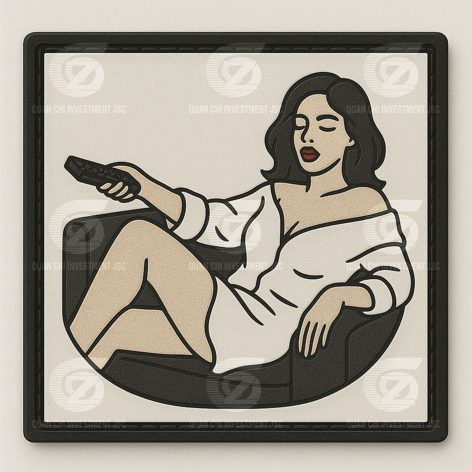 แผ่นพีวีซีออกแบบได้เอง-สาวเซ็กซี่บนโซฟา-แผ่นยางสำหรับเสื้อผ้ากระเป๋าเป้หมวกสไตล์กลมหรือสี่เหลี่ยม