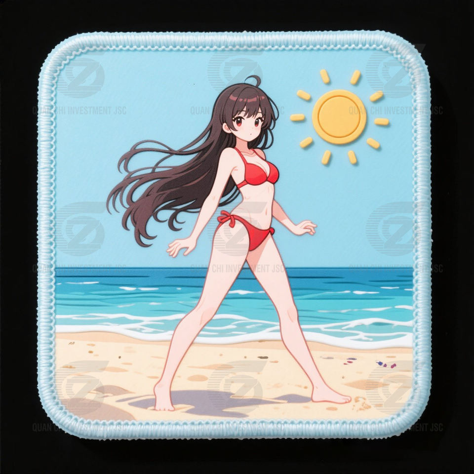 Custom PVC Rubber Patch with Sexy Anime Beach Girl | Round or Square Design for Clothing, Backpacks & Hats