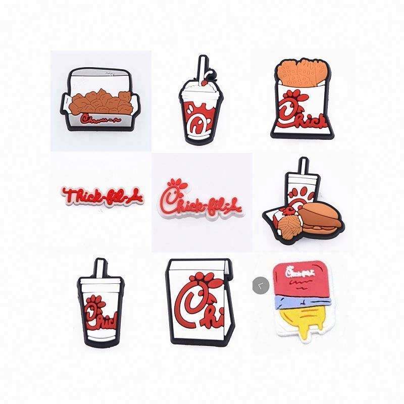จี้รองเท้าพีวีซีแบบกำหนดเอง ของตกแต่งรองเท้า ชิค-ฟิล-เอ รองเท้าคล็อก ขายส่ง จี้รูปอาหาร