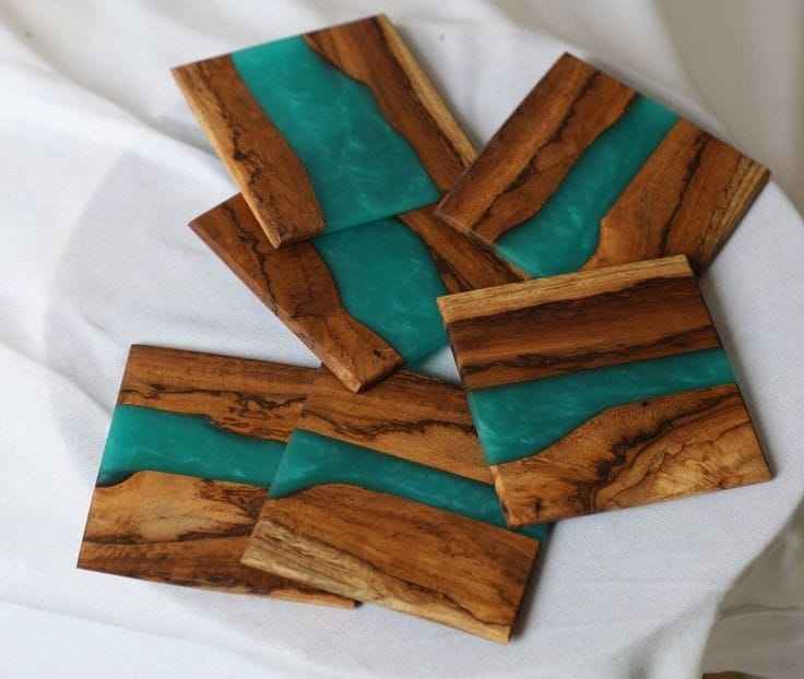 ชุดถาดรองแก้วทำจากไม้บรรจุภัณฑ์แบบกำหนดเองงานฝีมือเรซิ่นที่มีสไตล์โมเดลนางฟ้า
