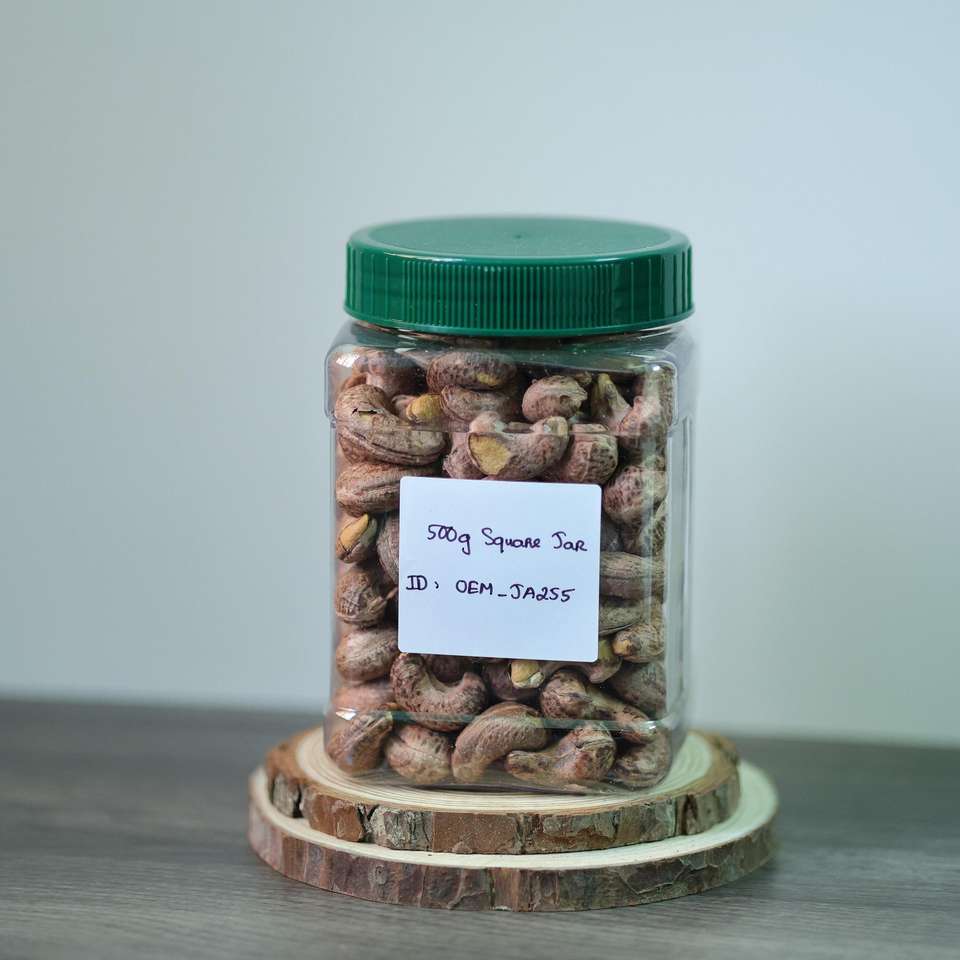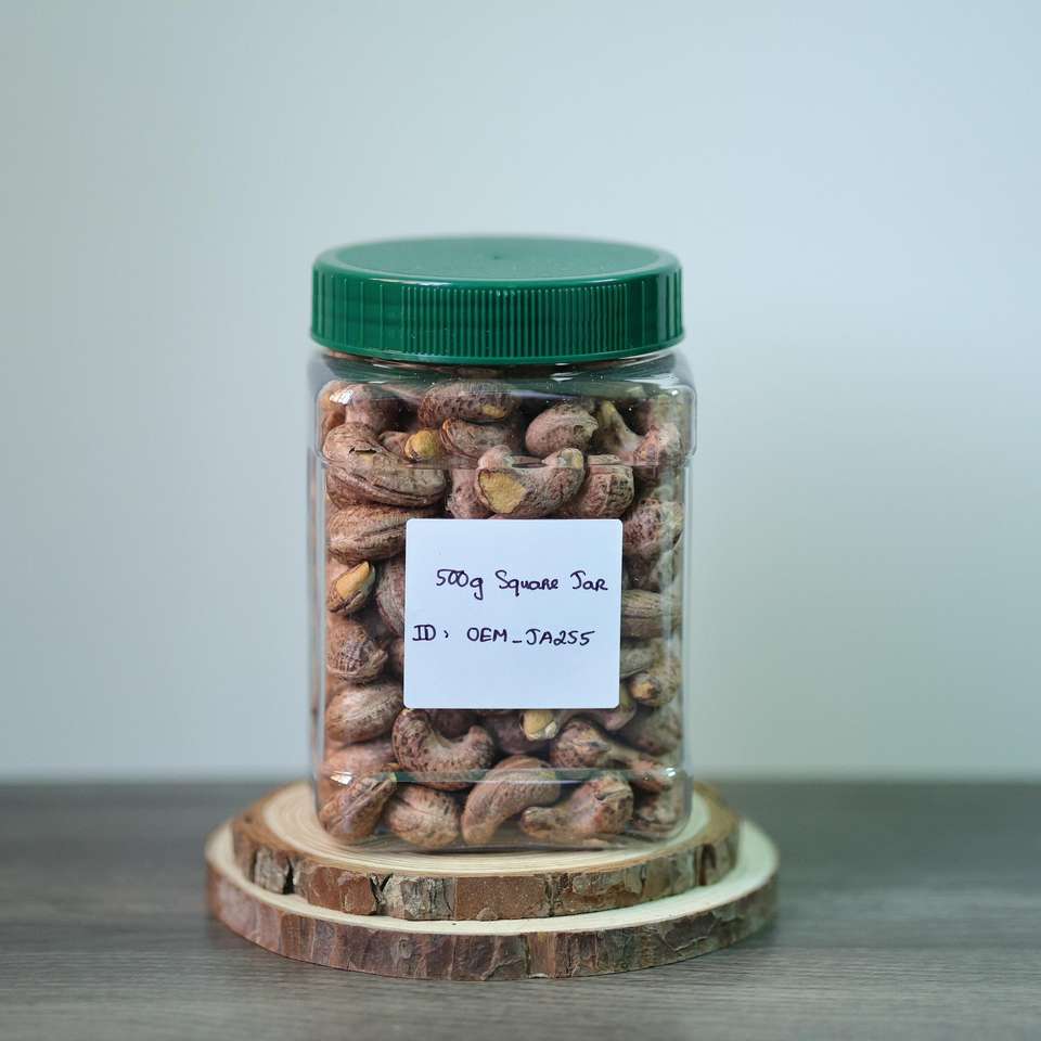 เมล็ดมะม่วงหิมพานต์จากเวียดนามกระปุกสี่เหลี่ยม500กรัมฝาปิดสีเขียวตามสั่ง