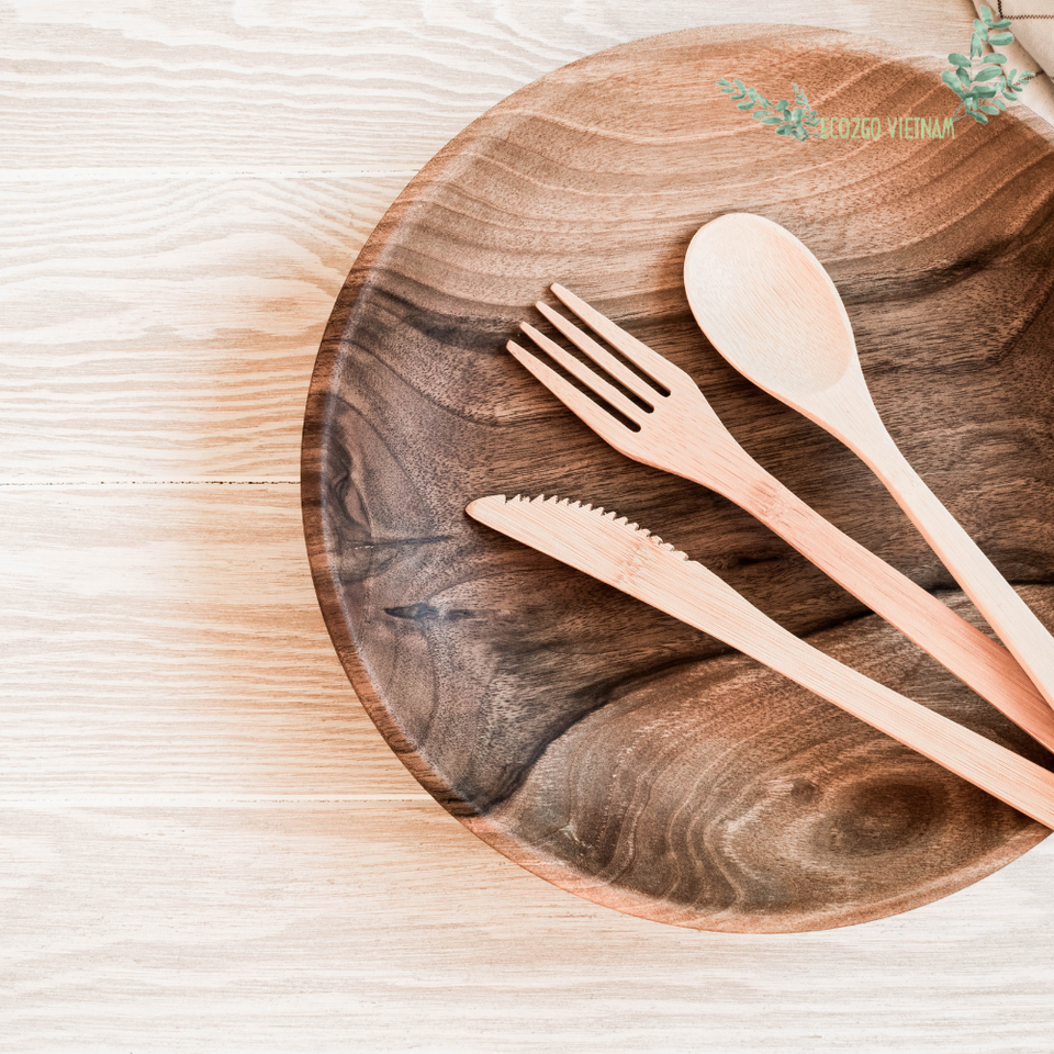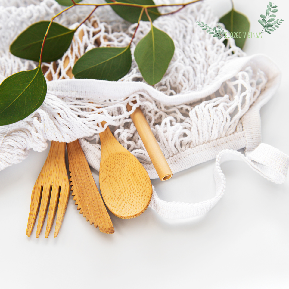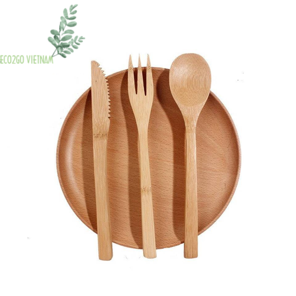 ชุดช้อนส้อมไม้ไผ่แบบใช้แล้วทิ้งสำหรับเดินทางพร้อมโลโก้เลเซอร์แกะสลักแพ็คแบบกำหนดเองในเวียดนาม