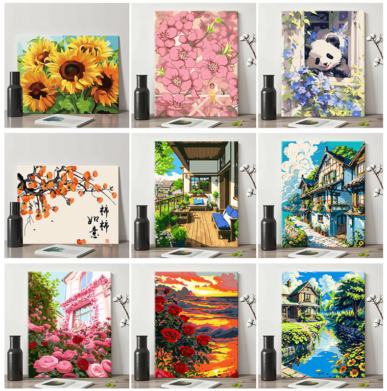 ภาพวาดอะคริลิคระบายสีตามตัวเลขแบบกำหนดเองภาพระบายสีผ้าใบของขวัญศิลปะผนังบ้านวัตถุตกแต่ง