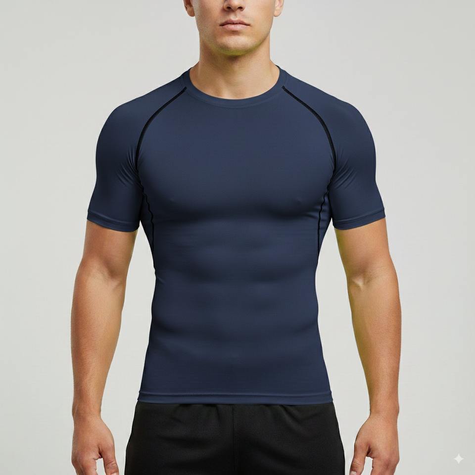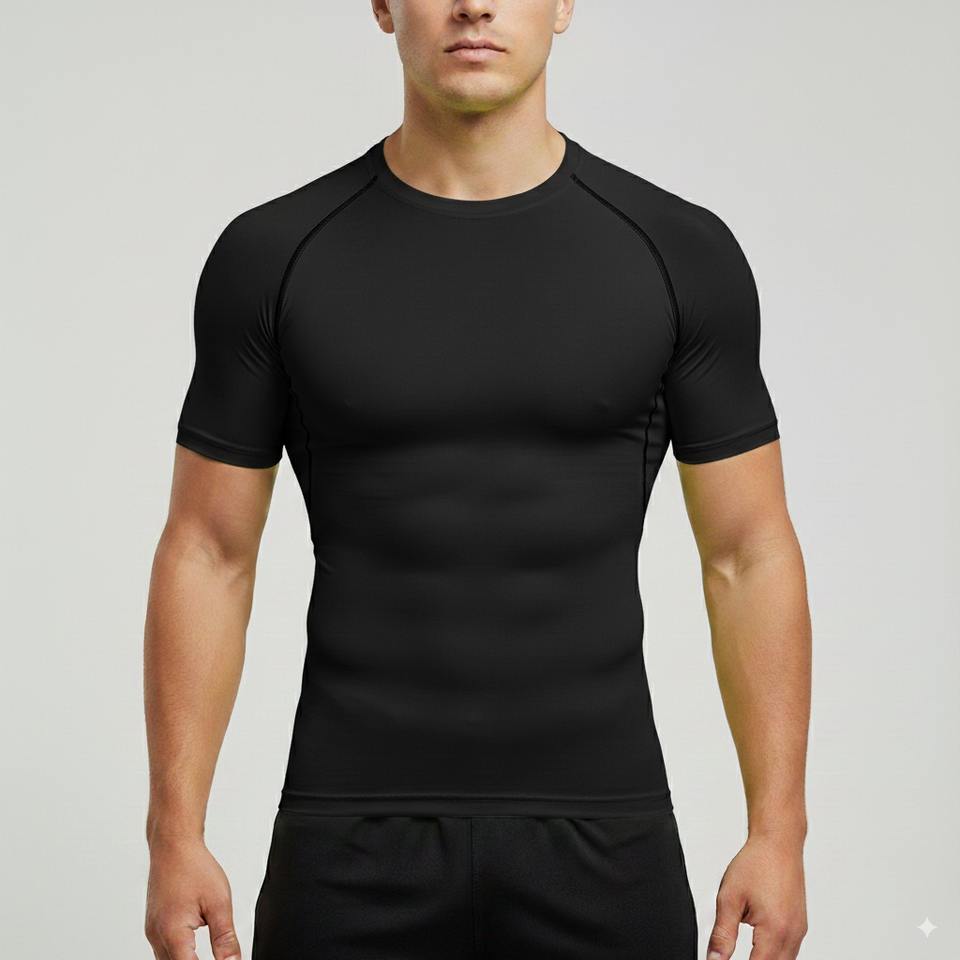 เสื้อรัดรูปแขนสั้นสำหรับผู้ชายผ้าโพลีเอสเตอร์ระบายอากาศแห้งเร็วทำจากปากีสถาน